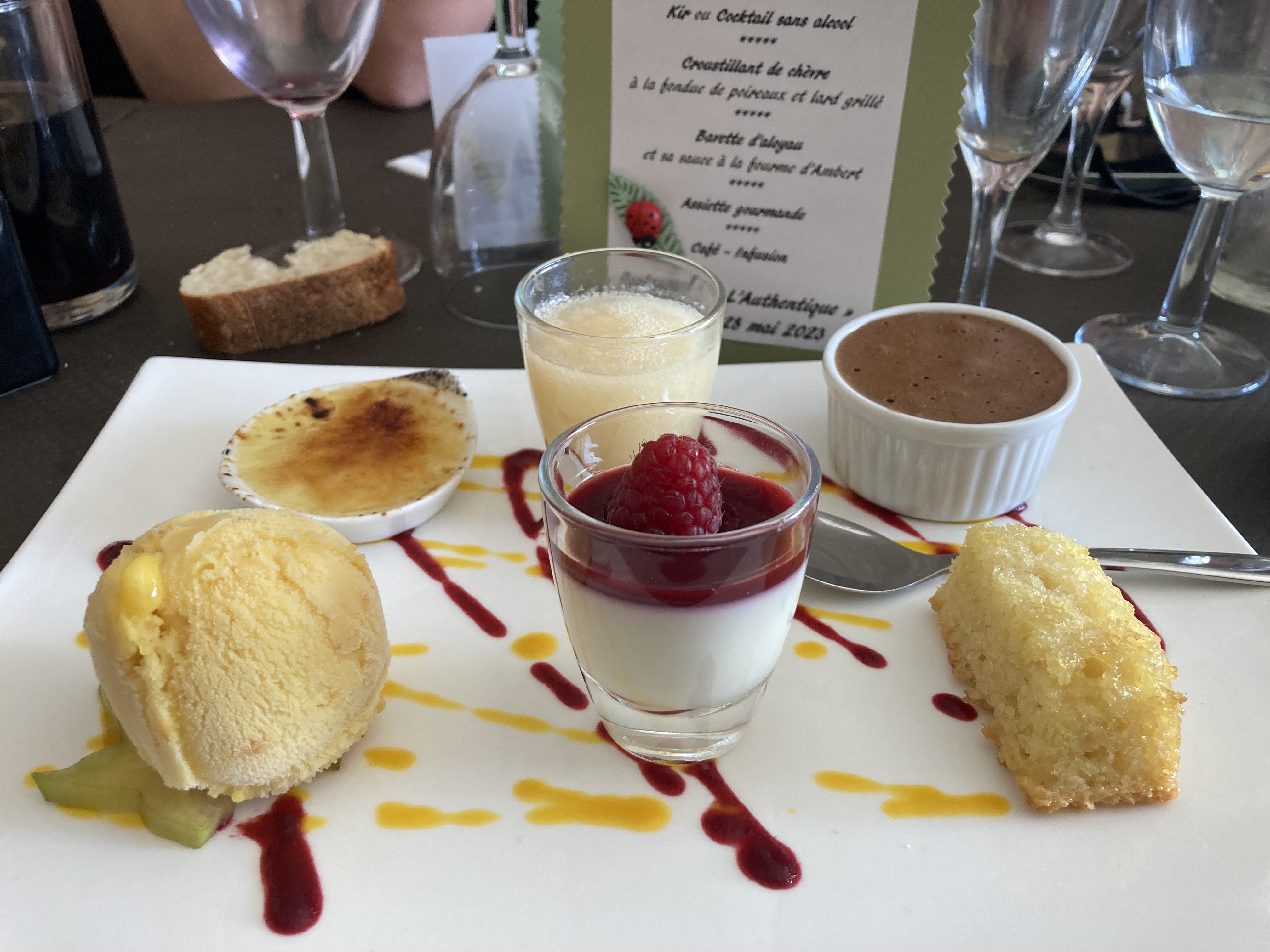 Nourriture superbe. et un excellent rapport qualité-prix au Restaurant L'Authentique. Excellent service et bon choix de plats préparés par le propriétaire/chef et servis avec le sourire de sa femme. Mousse de camembert, Canard cuit au miel, Merlu sauce saumon fumé avec glace pistache, Sorbet framboise et Clafoutis à suivre. Mmmmmmm...