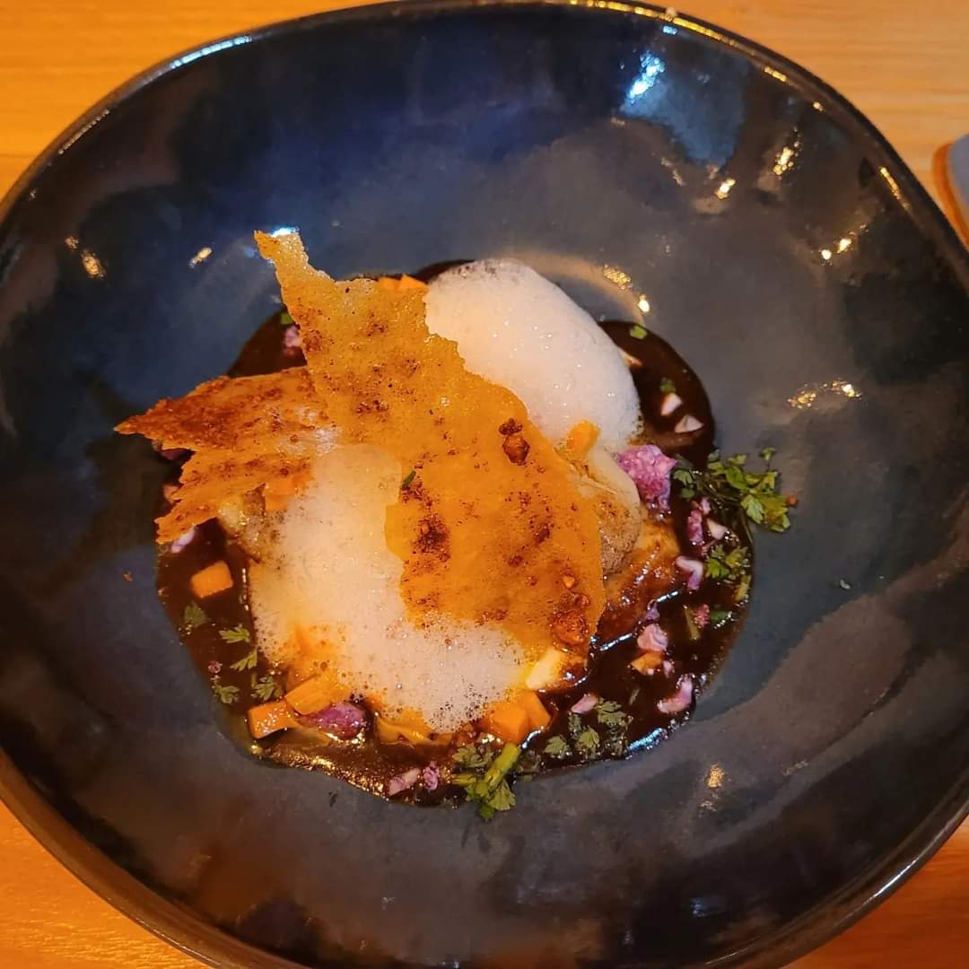 Un orgasme gastronomique de la mise en bouche au dessert une aventure à chaque plat avec une surprise gustative à chaque bouchées la passion du chef pour la gastronomie se ressent dans ses créations on y retournera les yeux fermés