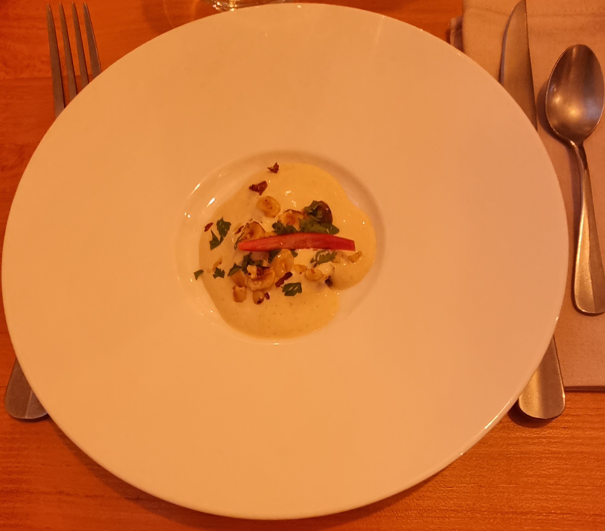 Franchement rien a dire c’était magnifique. De la grande gastronomie. De l’entrée au dessert. Le chef a un potentiel exceptionnel. Il se lance dans cette magnifique aventure et nous régale avec son talent. Adresse à recommander vous ne serez pas déçu.