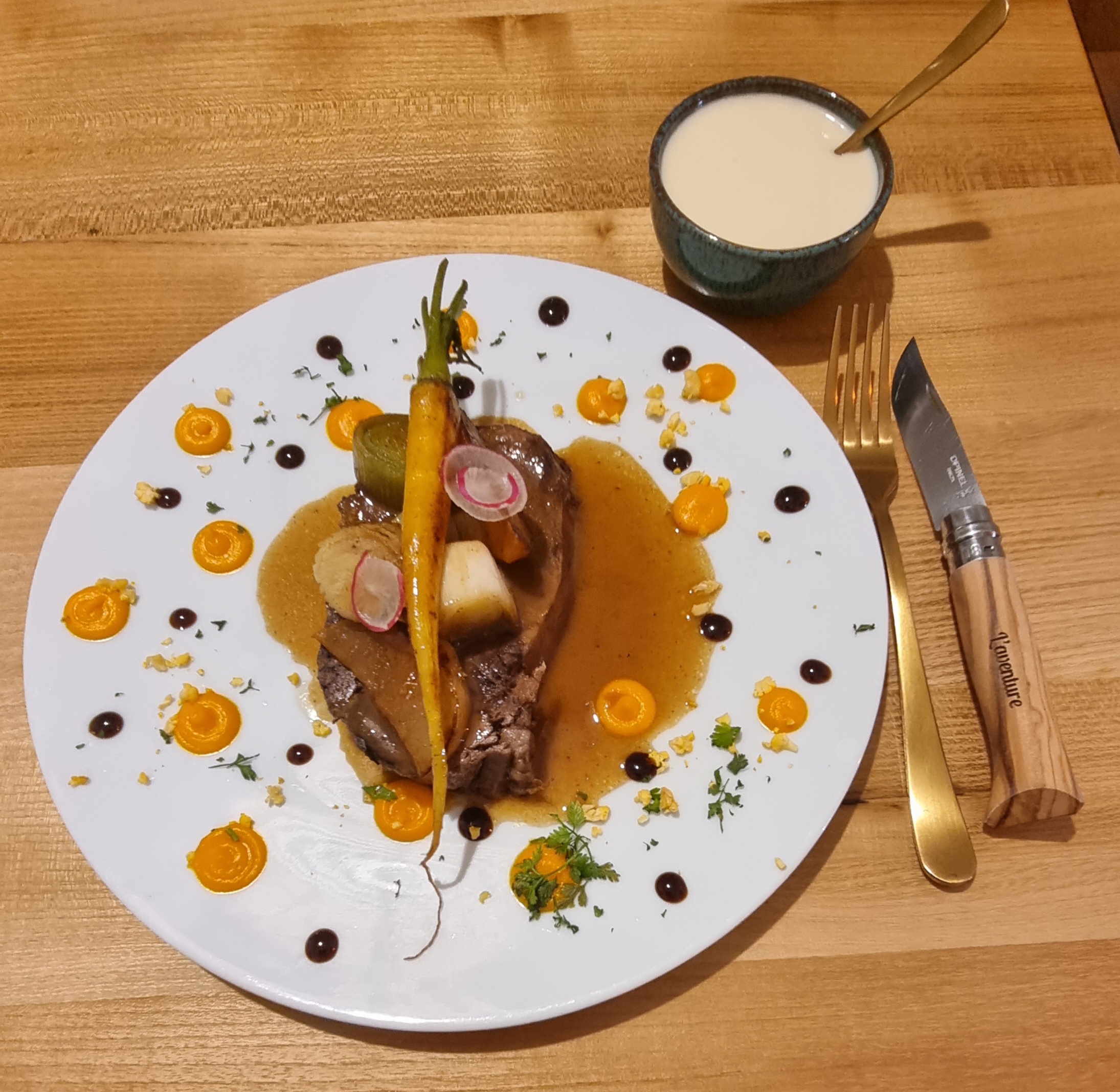 Une Aventure délicieuse ! Nous avons été agreablemement surpris de cette découverte. c'est bon, c'est beau, empreint de générosité, de délicatesse et d'humilité ! Bravo ! Un jeune chef à découvrir. Merci. Rico et Cha 😉