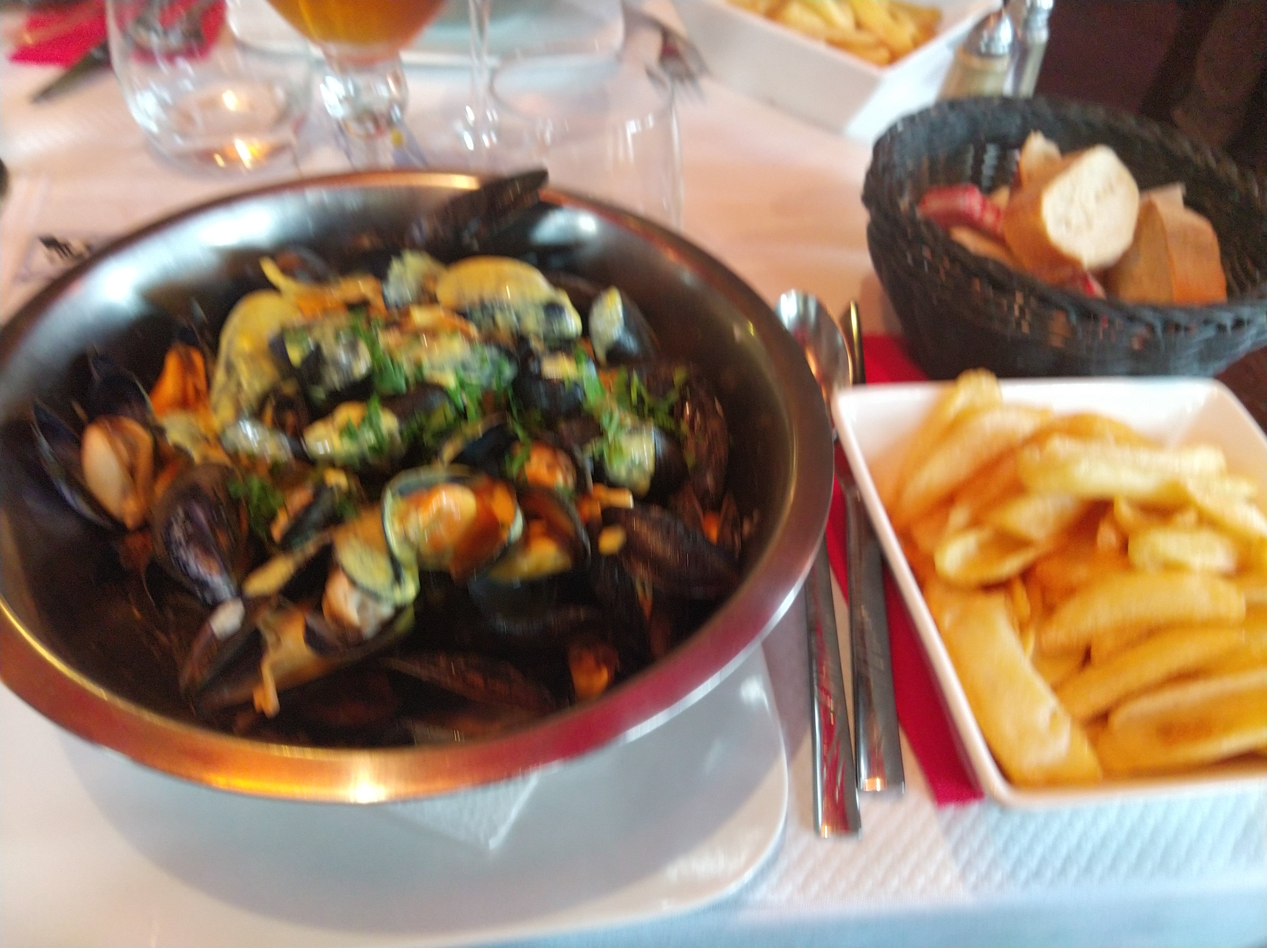 Le service est rapide car le personnel veut que vous partiez rapidement. Résultat des courses, les moules marinières froides et les moules au curry avec une crème écœurante froide. Heureusement nous avons eu 2 nouveaux plats chaud mais nous avons remplacé les moules au curry par les moules marinières.
