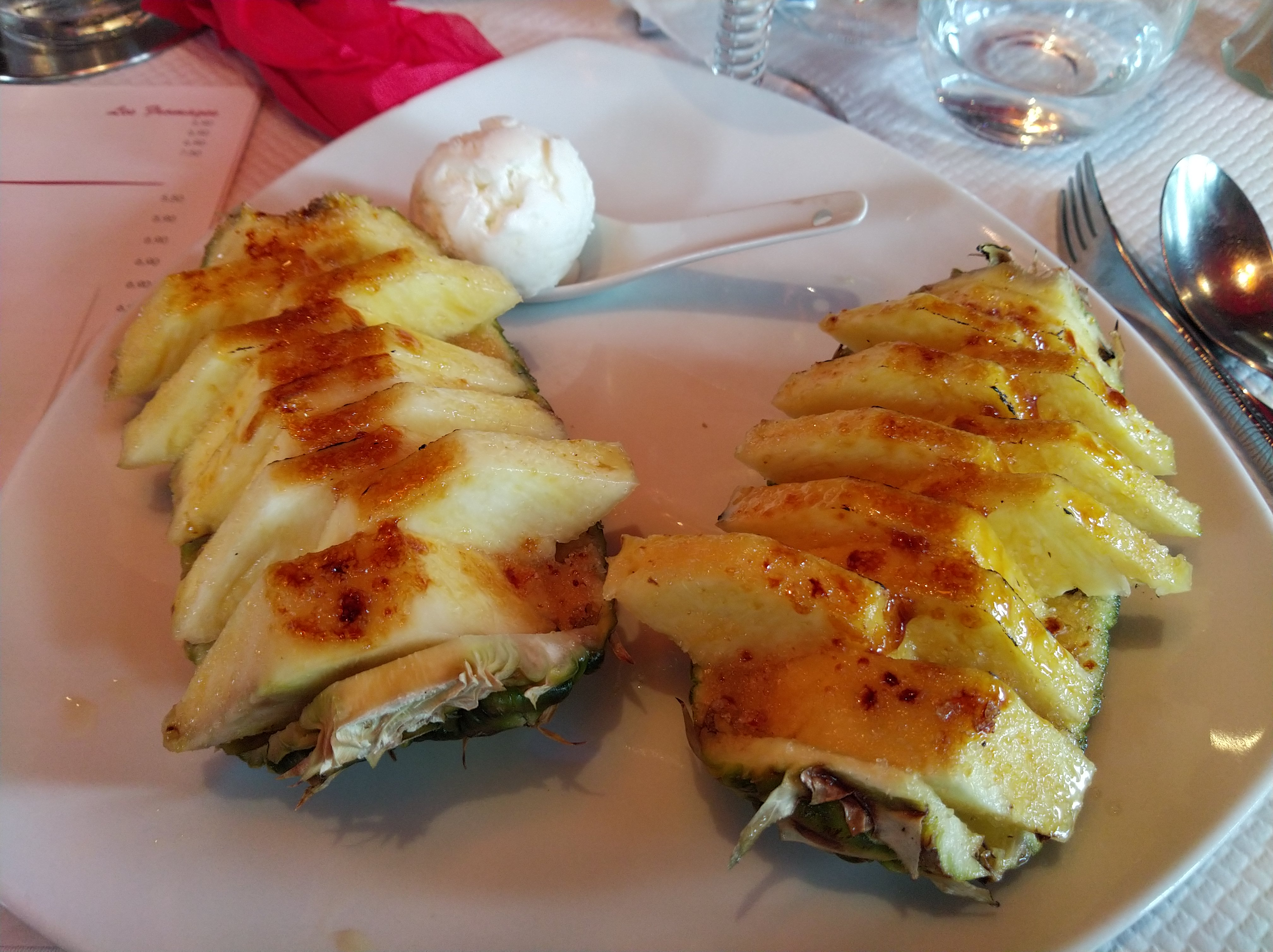 Accueil et service impeccable dans un restaurant chaleureux. Une bavette à l'échalote avec des haricots verts, plat copieux et surtout très bon. Dessert ananas entier rôti et flambé au rhum trop bon ! Miam-miam ! N'hésitez pas !