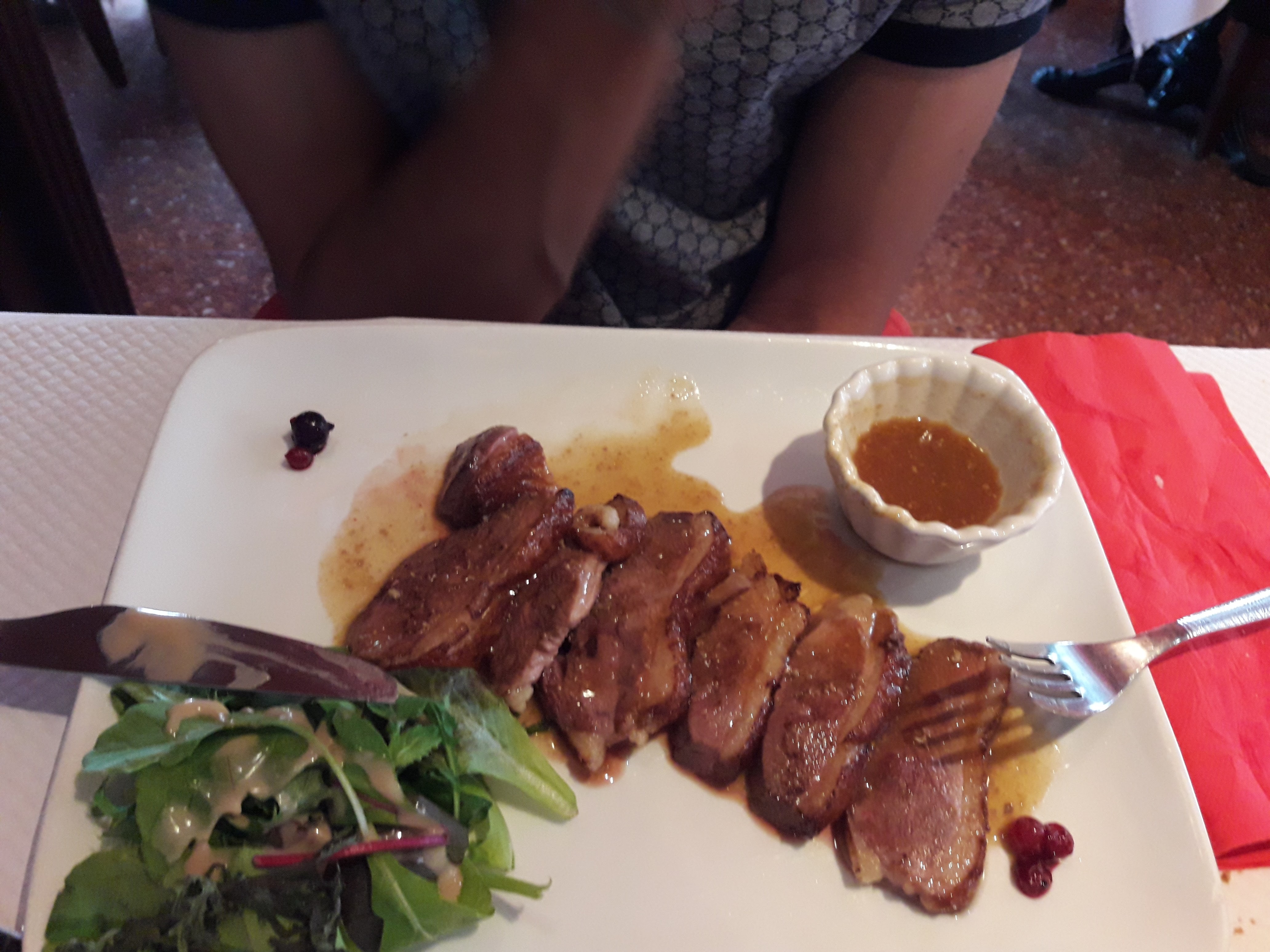 Bien que notre serveuse principale fut plus que professionnelle (aime le souriante, etc.), l'un de ses collègues le fut beaucoup moins. La carte est excellente. Niveau plats, c'est très bon. Par contre bonne cave de vins, mais très petit choix de bière (deux pressions). L'eau - carafe eau du robinet - avait une forte odeur chloré (ou vinaigré, une odeur très forte et désagréable). Mis à part ce désagrément ce fut très bon également copieux !