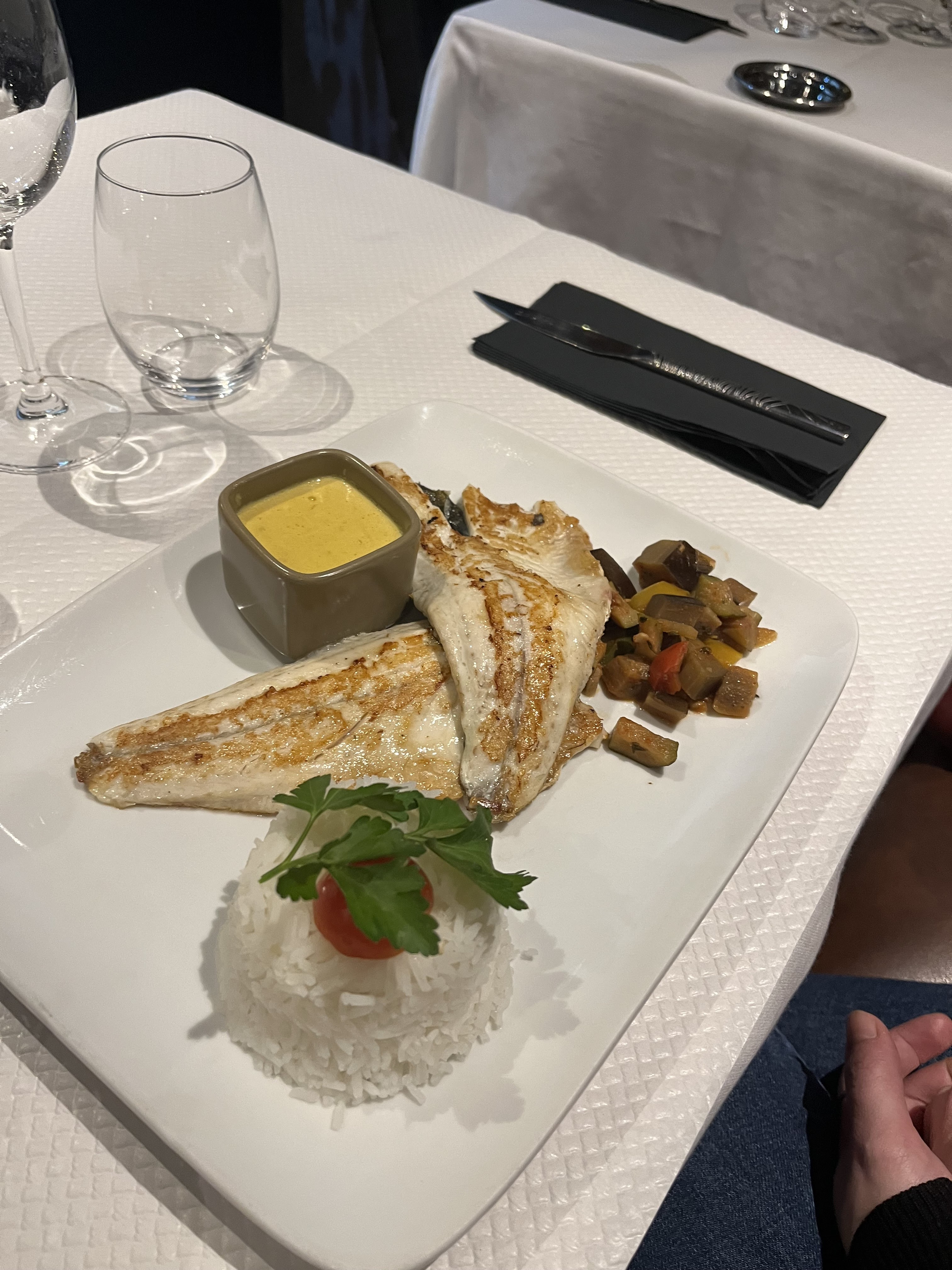 Serveur charmant et efficace. Côté repas c'était très moyen, le poisson était très sec et l'accompagnement sans grande originalité. Je n'y retournerai pas.