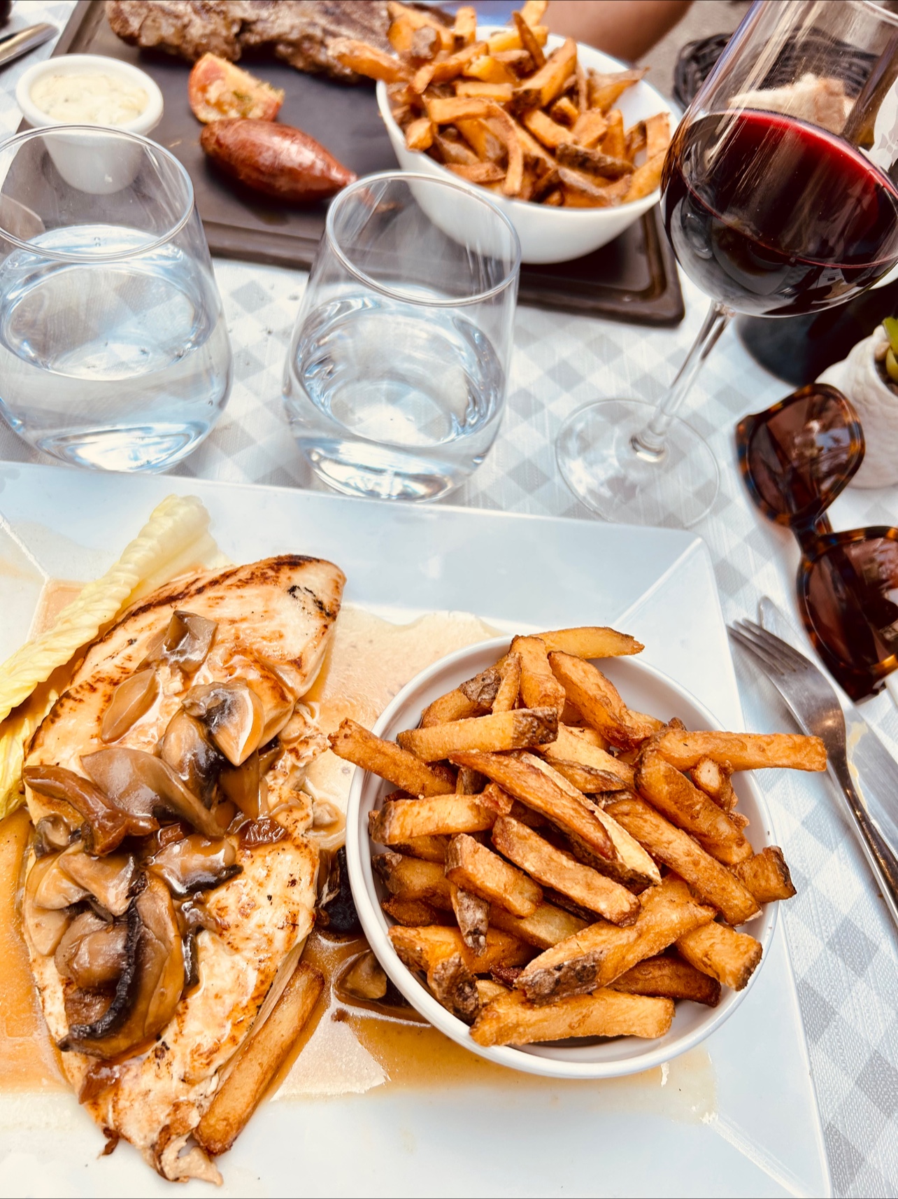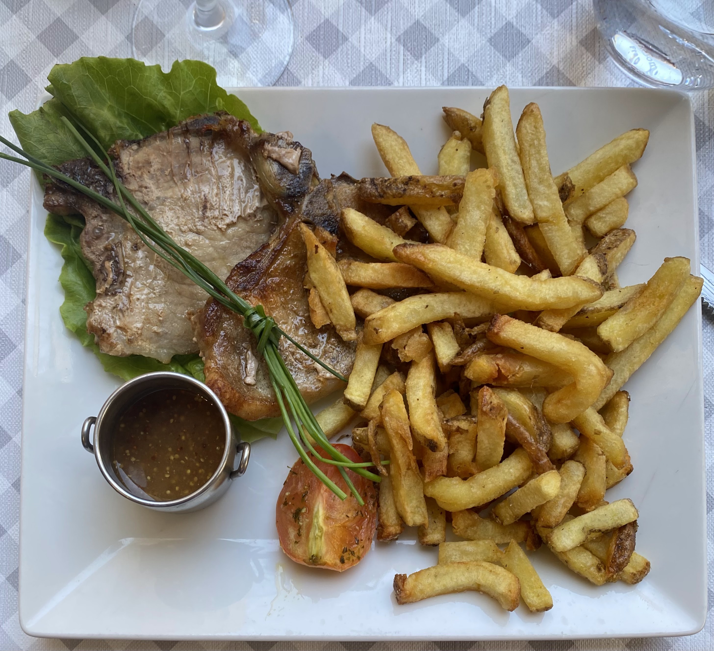 Belle pièce de viande mais manque de saveurs. Par contre la serveuse n’est pas du tout au niveau : Incapable de retenir les plats demandés (souffle après qu’on lui ait fait la remarque), et aussi de ne pas critiquer les clients à proximité des autres. Mais par contre elle retient bien de chahuter avec ses collègues. Pareil son collègue : pas top de se laver les mains dans le seau d’eau où trempe la lavette pour nettoyer les tables, pour ensuite empoigner les carafes d’eau par le goulot .🙃 Ce choix de dernière minute a terni notre dernière journée de vacances à Montpellier