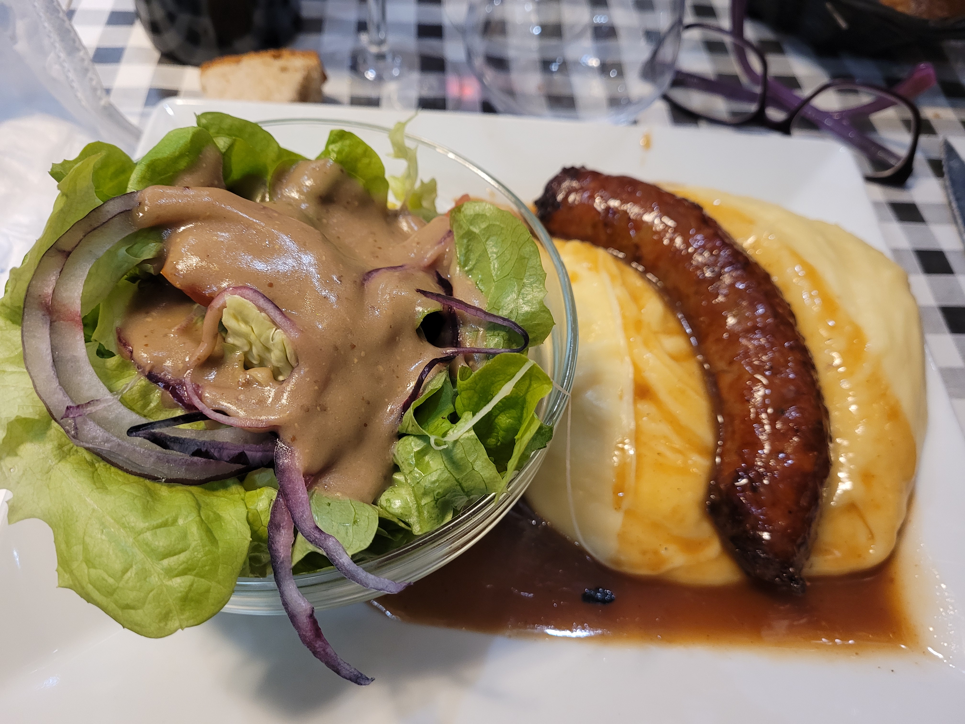 De passage à Montpellier, nous avons découvert ce restaurant un soir de semaine. Pas mal de monde en ce mardi soir, mais le service est parfait et fluide. Côté choix, nous avons voulu goûter la saucisse et aligot, nous n'avons pas été déçus. Bonne quantité avec une petite salade et sa sauce vinaigrette à la moutarde ancienne excellente. La qualité était au rendez-vous. Les prix sont honnêtes. Une bonne adresse que nous notons pour y revenir.