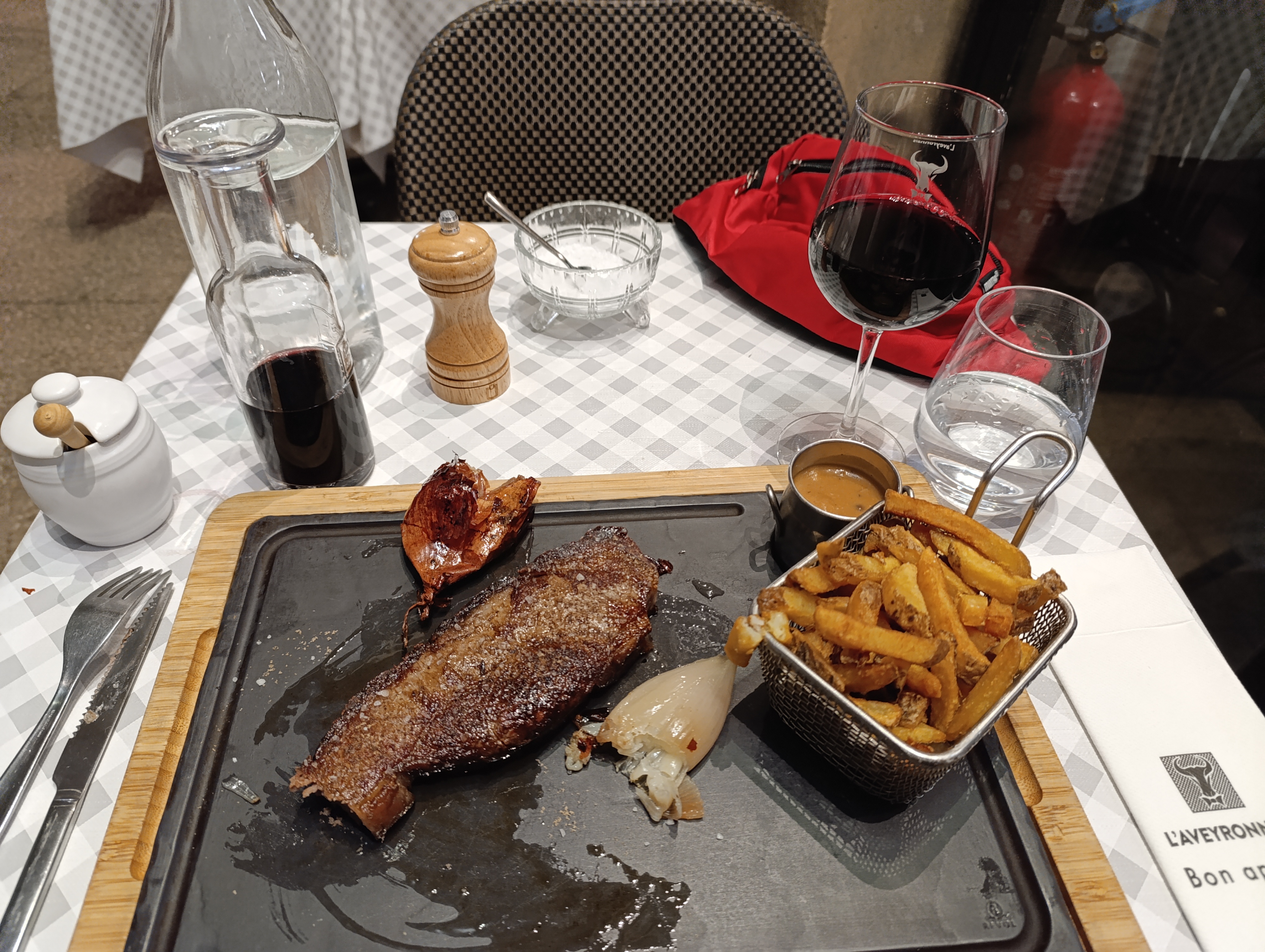 Déçu en sortant de ce restaurant ce soir… Nous avons décidé, avec des amis, d’aller découvrir cet établissement avec sa carte riche en bons plats et viandes. J’ai décidé, pour commencer, de partir sur l’assiette de terrine Aveyronnaise et cette entrée était plutôt bonne et très copieuse. Seulement, la mauvaise surprise est arrivée sur le deuxième plat. J’ai décidé de choisir le magret de canard que j’ai évidemment commandé saignant (cuisson classique et recommandée) mais une fois le plat arrivé, j’ai déjà eu du mal à le couper et j’ai remarqué que le magret était beaucoup trop cuit sur les extrémités mais cru à l’intérieur ! Une viande qui n’a pas été aérée correctement avant cuisson ? Ou peut-être autre chose… Bref, un magret de canard trop cuit et donc déçu pour un plat payé 30€… Les frites et la sauce au poivre en accompagnement étaient cependant appréciables et plutôt nécessaires pour ce genre de plat… Le personnel me dit que le magret était bien saignant mais difficile à découper même avec un bon couteau à viande ? Revoyez au moins vos arguments.