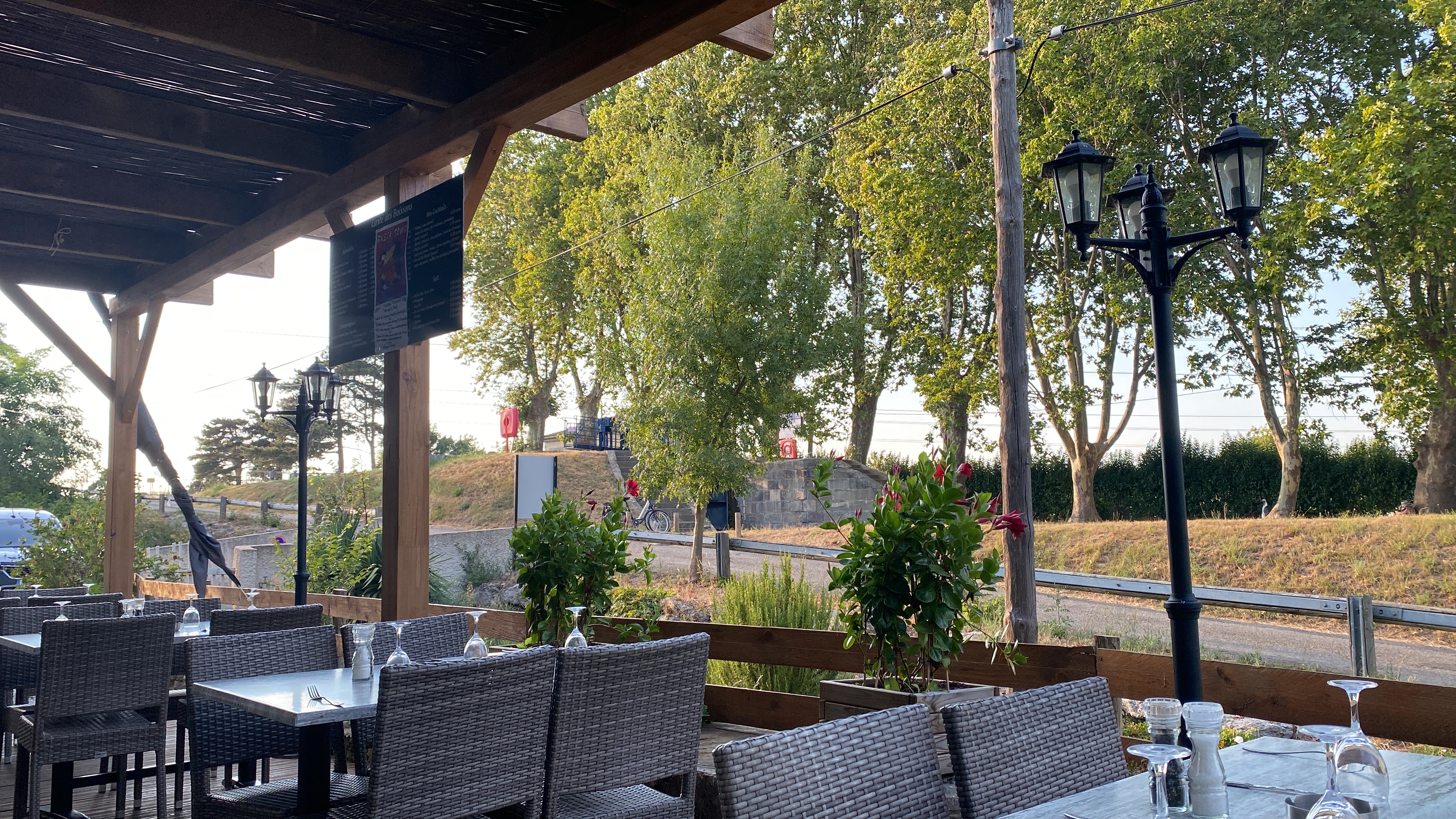 Lieu atypique pour nous, ombragé. Très très bon accueil. Menu au top. Spectacle en plus, le passage d écluse des bateaux. A faire et a refaire.