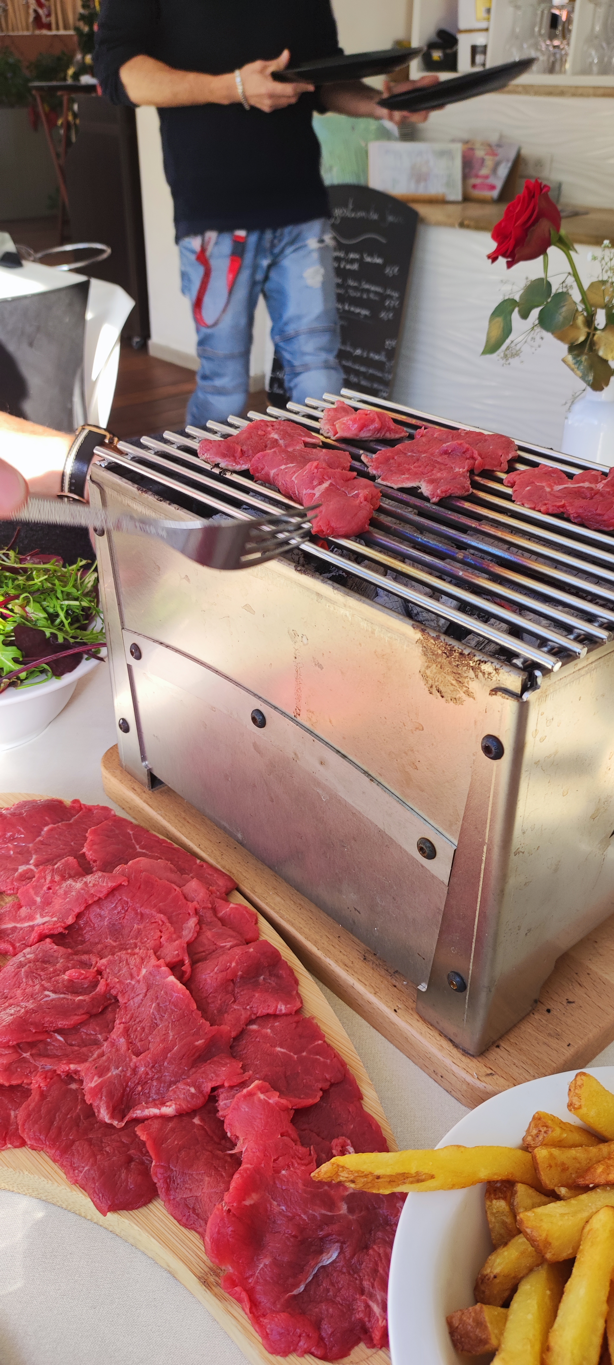 1 étoile pour la gentillesse et le professionnalisme du serveur (Carlo je crois... Obrigado ;) 1 étoile pour la qualité de notre repas. (Il a bien été précisé que les raviolis contenaient de la viande pour ma fille végétarienne, merci) et pour les autres convives, la viande au brasero au top avec des sauces à tomber par terre ! 1 étoile pour le cadre avec une atmosphère détendue et une jolie décoration 1 étoile pour les attentions répétées pour voir si tout allait bien Il manque 1 étoile car service trop long pour les desserts, nous sommes partis sans... Nous reviendrons assurément !