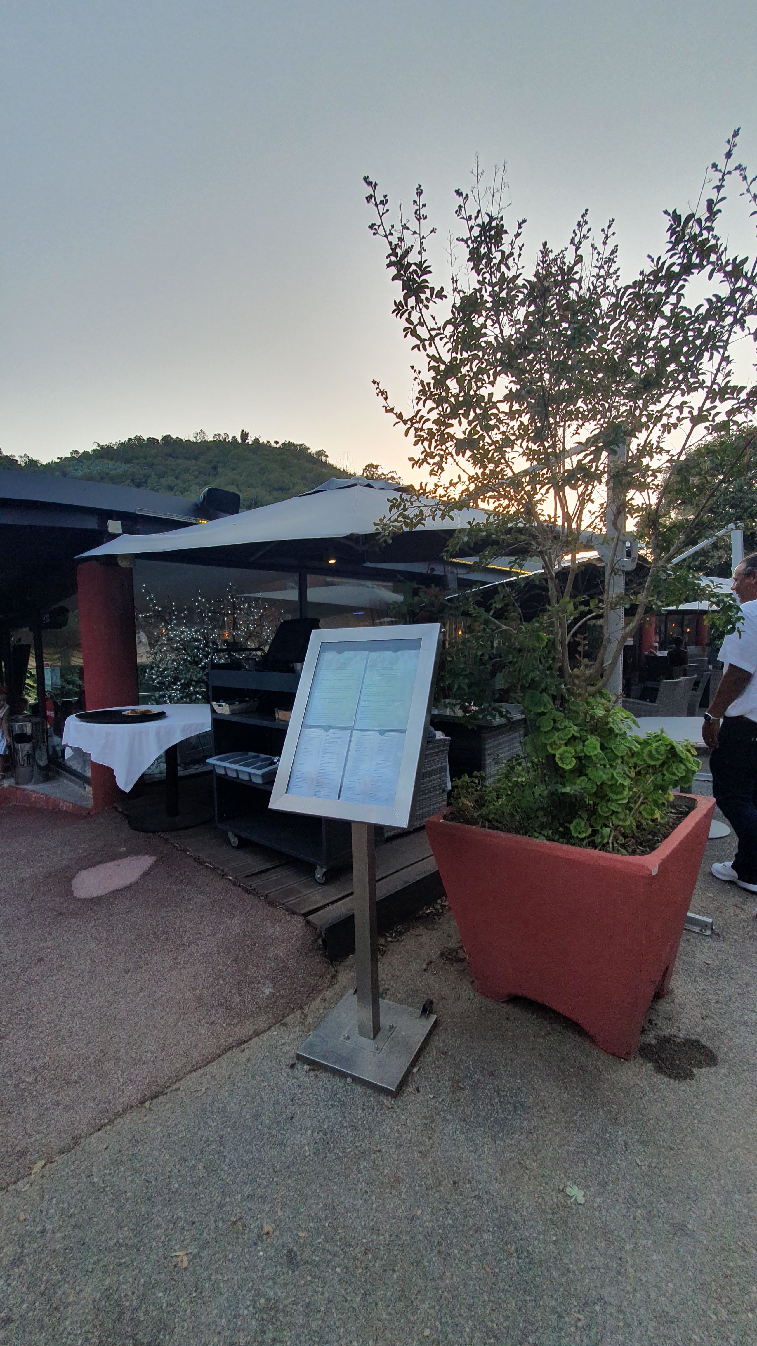 Restaurant qui profite d’une très belle vue, d’un cadre idyllique. Mais malheureusement la soirée fut gâchée par un serveur désagréable et qui semblait s’impatienter, celui qui a les cheveux grisonnants. Il soupirait et regardait ailleurs le temps de prendre notre commande. Sinon les autres serveurs.serveuses étaient tous agréables et très aimables c’est dommage. Concernant les plats peu de choix ce dimanche soir, et des prix qui je trouve excessifs (28€ un risotto), bien que vous justifierez d’une sélection de produits frais … Arrivés à 19h40 le plat nous a été servi à 21h30, après une seule entrée partagée qui elle a été servie rapidement. La prise de commande des boissons a été tardive aussi, pourtant guère de monde et beaucoup de serveurs. Je ne recommanderai donc pas ce restaurant compte tenu de notre serveur, de l’attente et des prix.