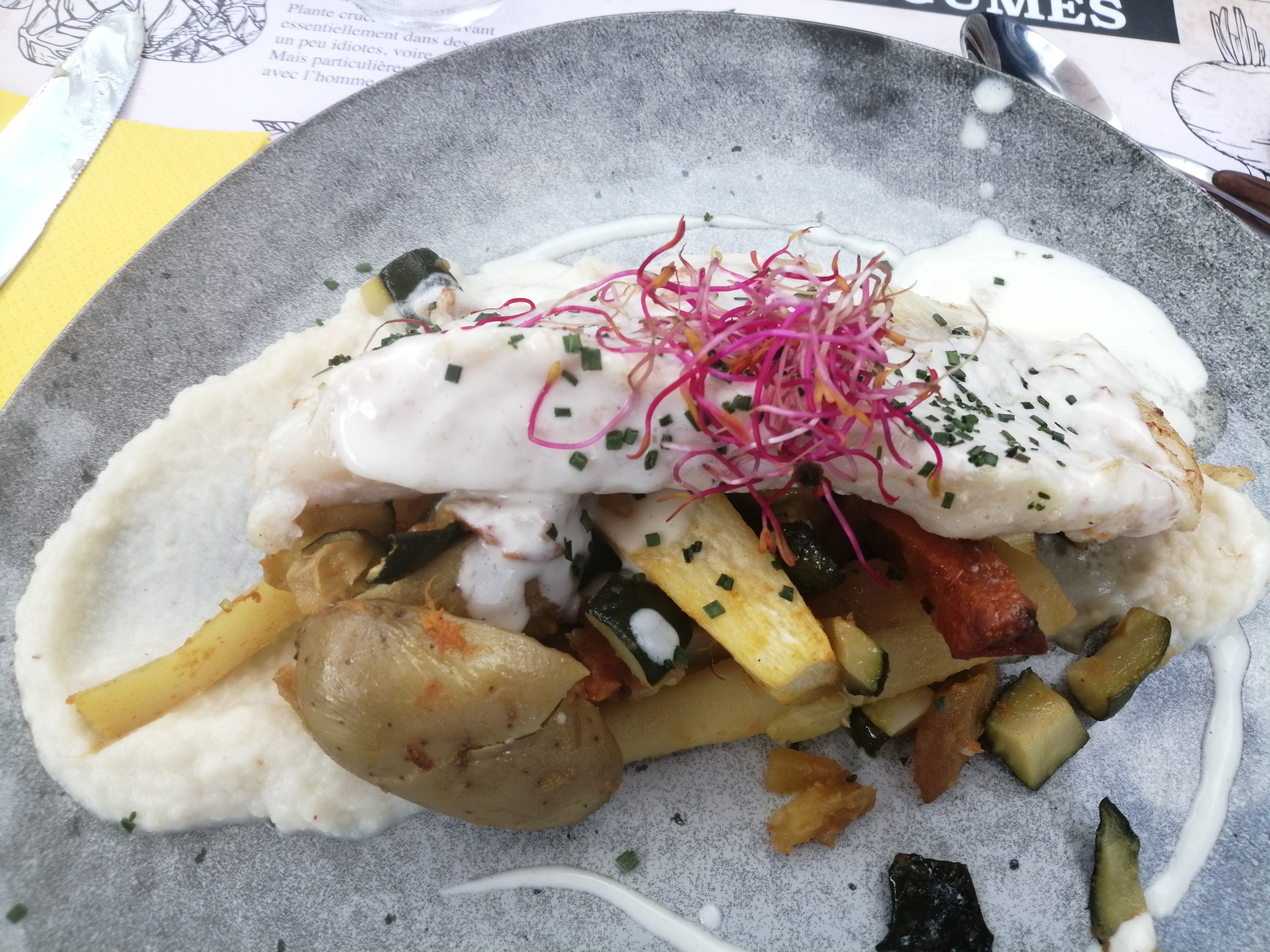 Beau dressage des assiettes le goût est là également. Prix correct 23 € le menu Belle découverte.