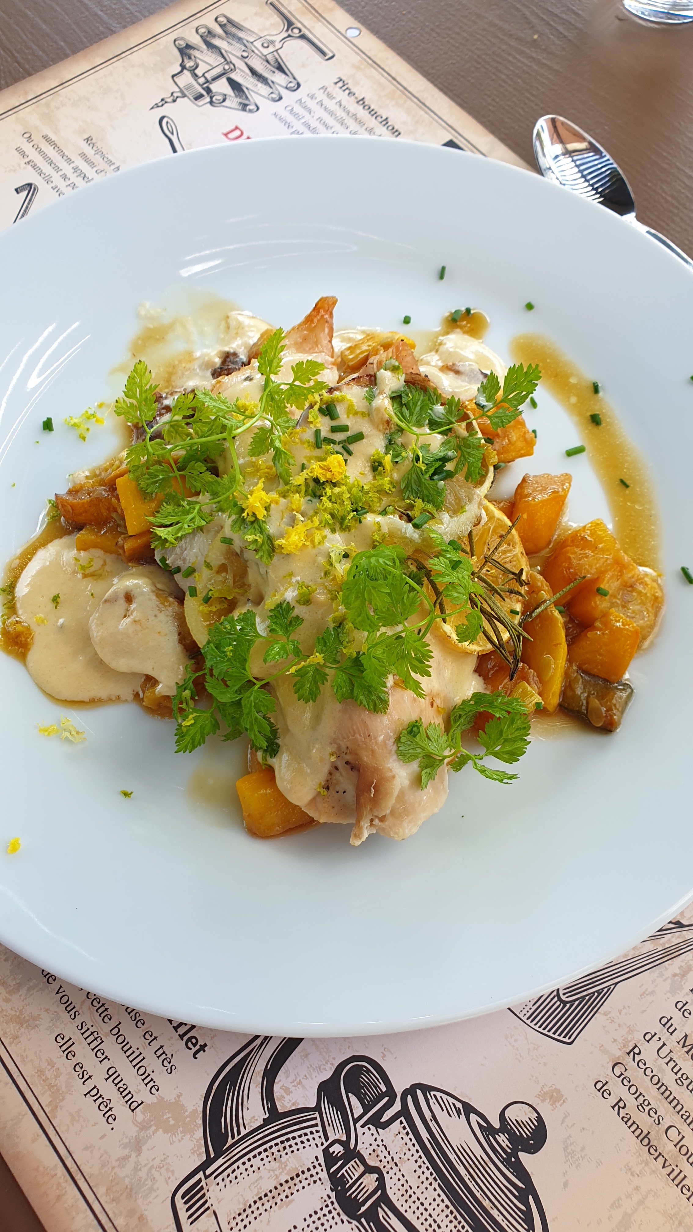 Petite carte de saison, signe d'une cuisine de qualité qui était au rdv, le tout dans un cadre original avec un bon rapport qualité prix.