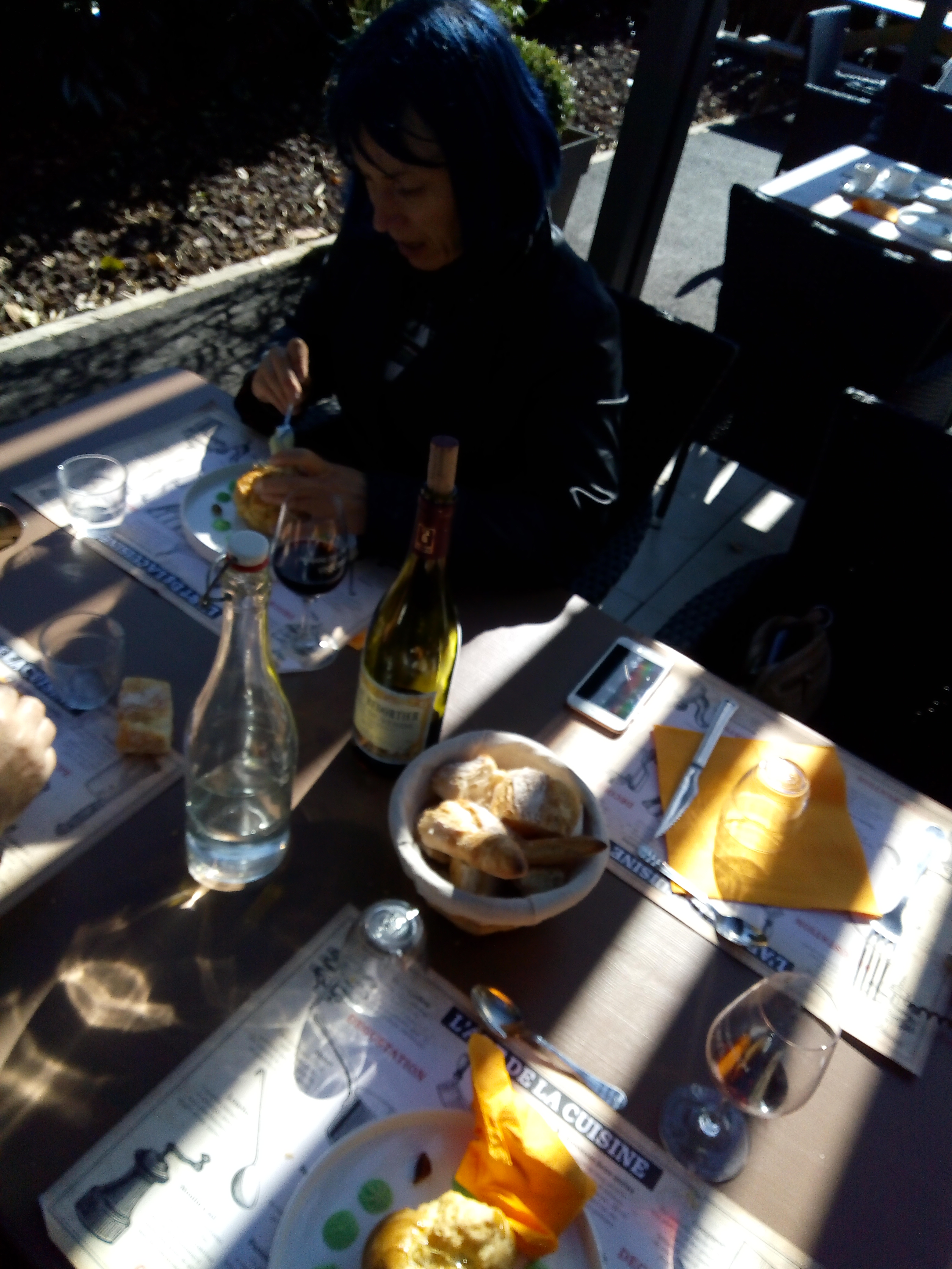 Bonne note pour notre entrée à l'école 🙂 Belle leçon de sympathie du personnel. Récré singulière avec un menu bien étudié. Petite tâche (d'encre)... le tél. sonne un peu fort. Moment présent presque parfait, à refaire dans le futur simple 😉 Merci.