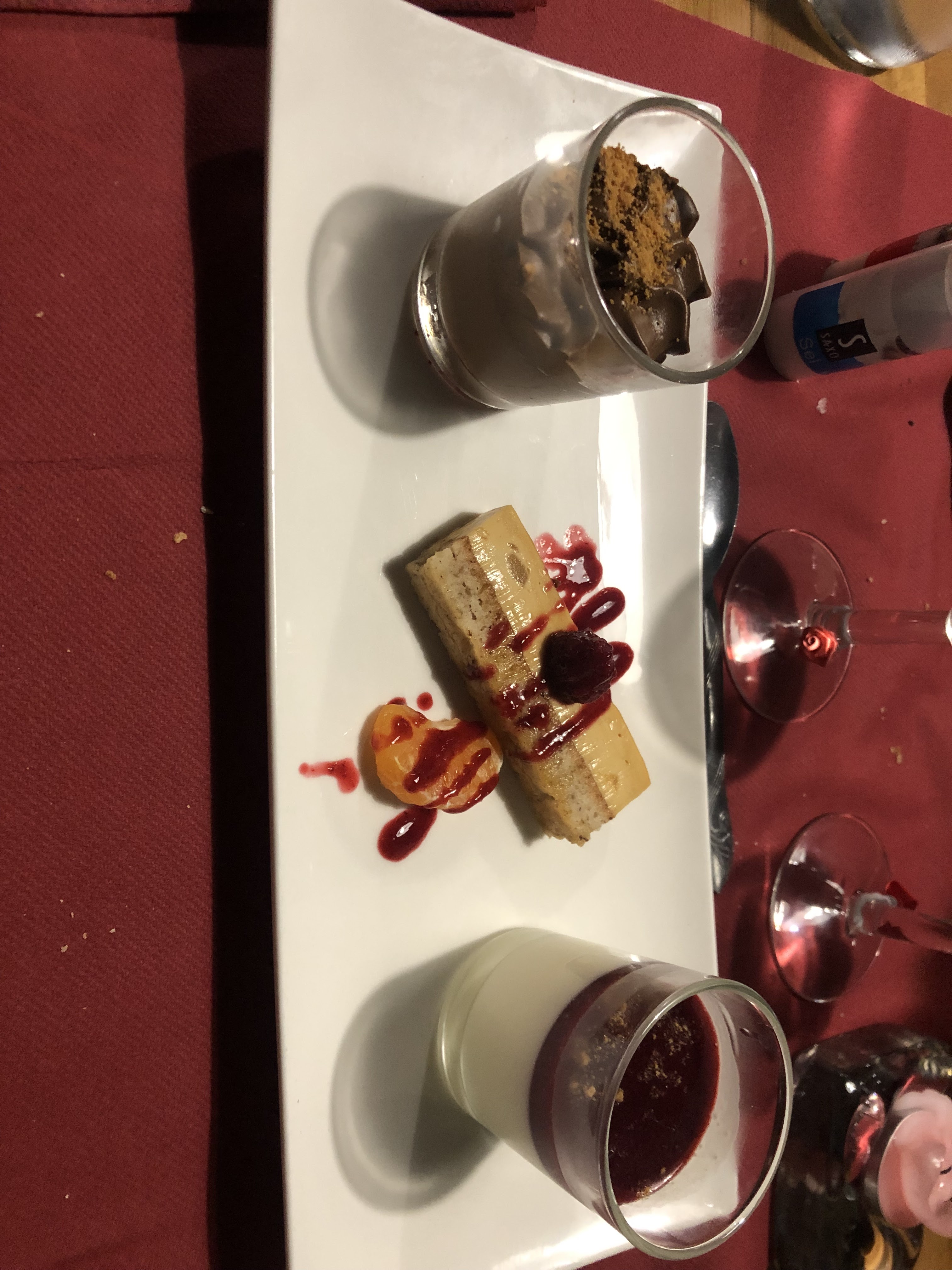 Repas excellent Une surprise musicale et bougie pour mon anniversaire ce qui est très sympathique Seul bémol la serveuse qui amène les desserts avant d'avoir débarrasser les plats