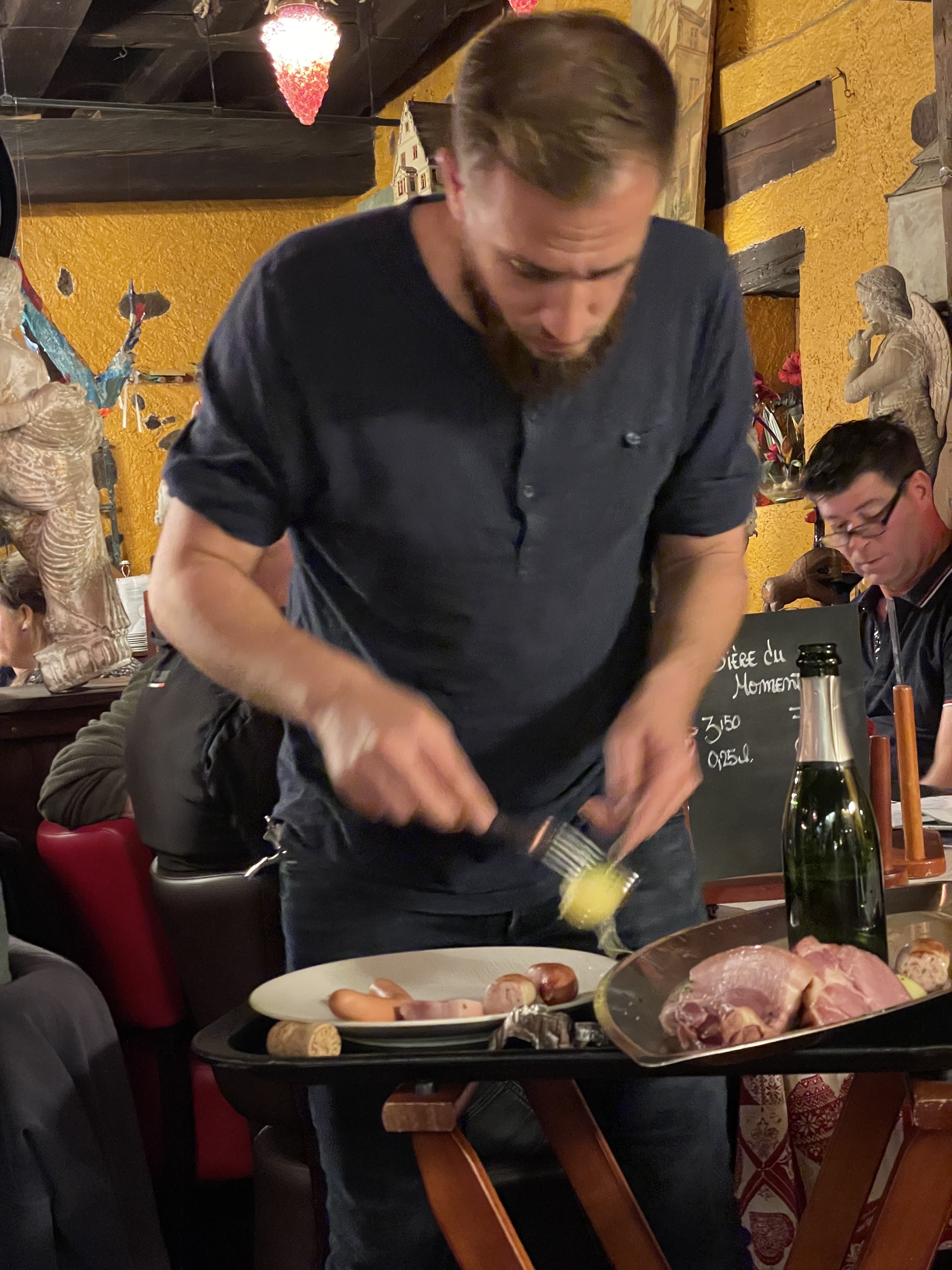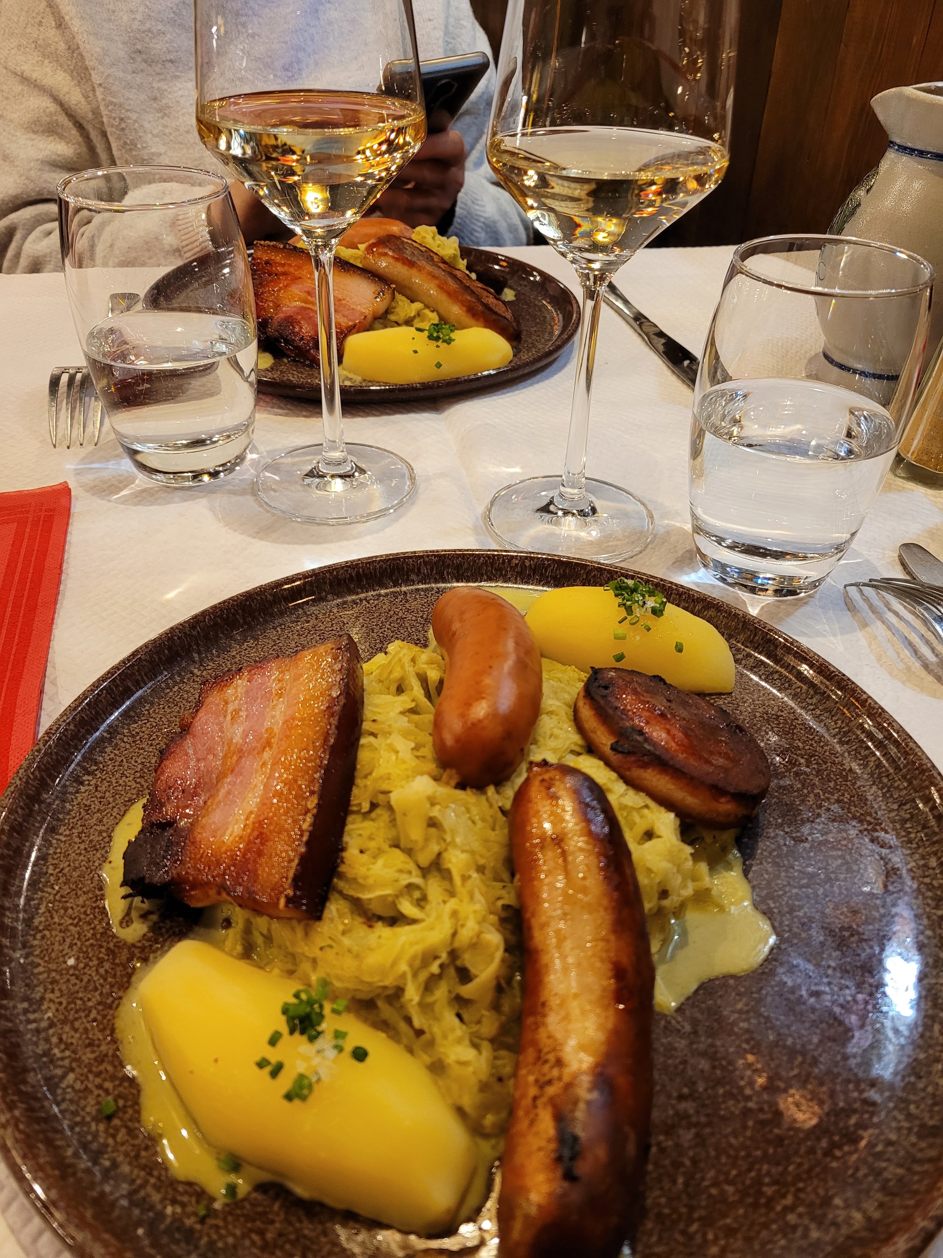 Excellent repas dans un restaurant extrêmement charmant avec des serveuses et des serveurs très agréables. Il vaut mieux réserver une table, comme nous l'avons fait, car le restaurant était presque complet quand nous sommes arrivés. Il y a des plats typiques de la région, comme le choucroute. Les prix sont très bons surtout dans une ville touristique.