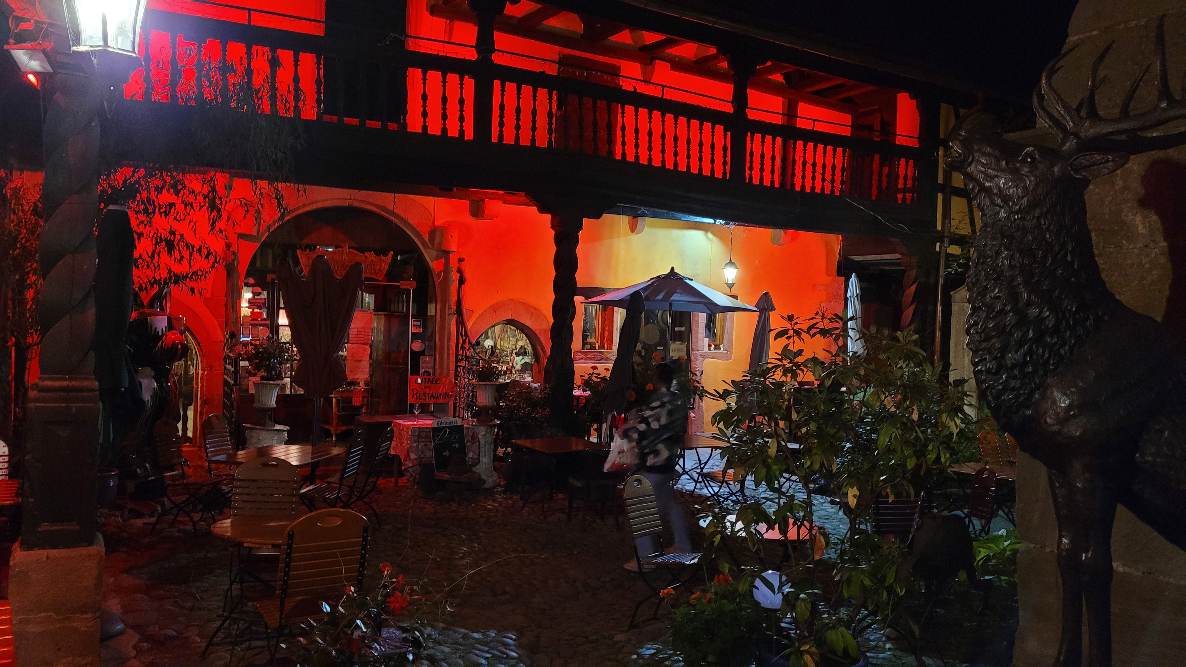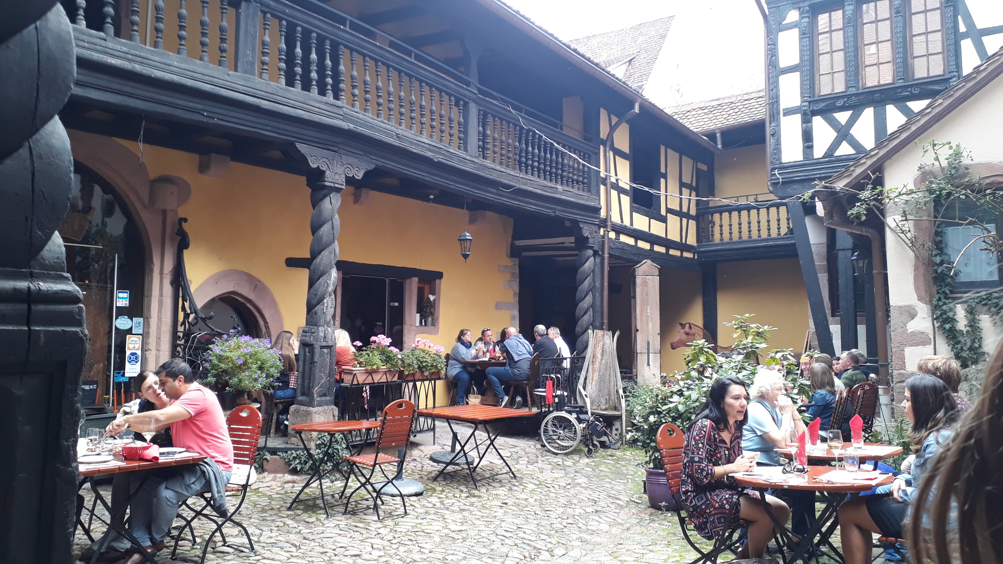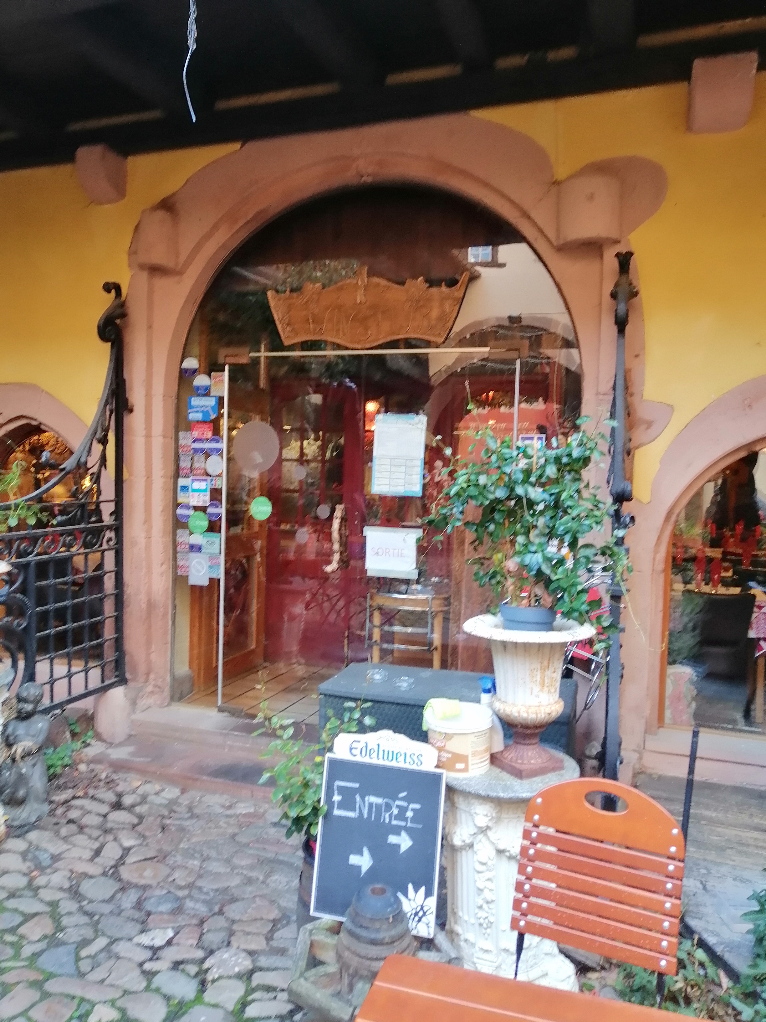 Au milieu de la cohue de la rue principale de Riquewihr, ce restaurant a une terrasse au calme très sympathique ! Les serveurs sont très gentils, les plats très bons ! Cependant si vous voulez de la place en terrasse allez y tôt, au début du service car ça se remplit rapidement! Sûrement dû au succès!