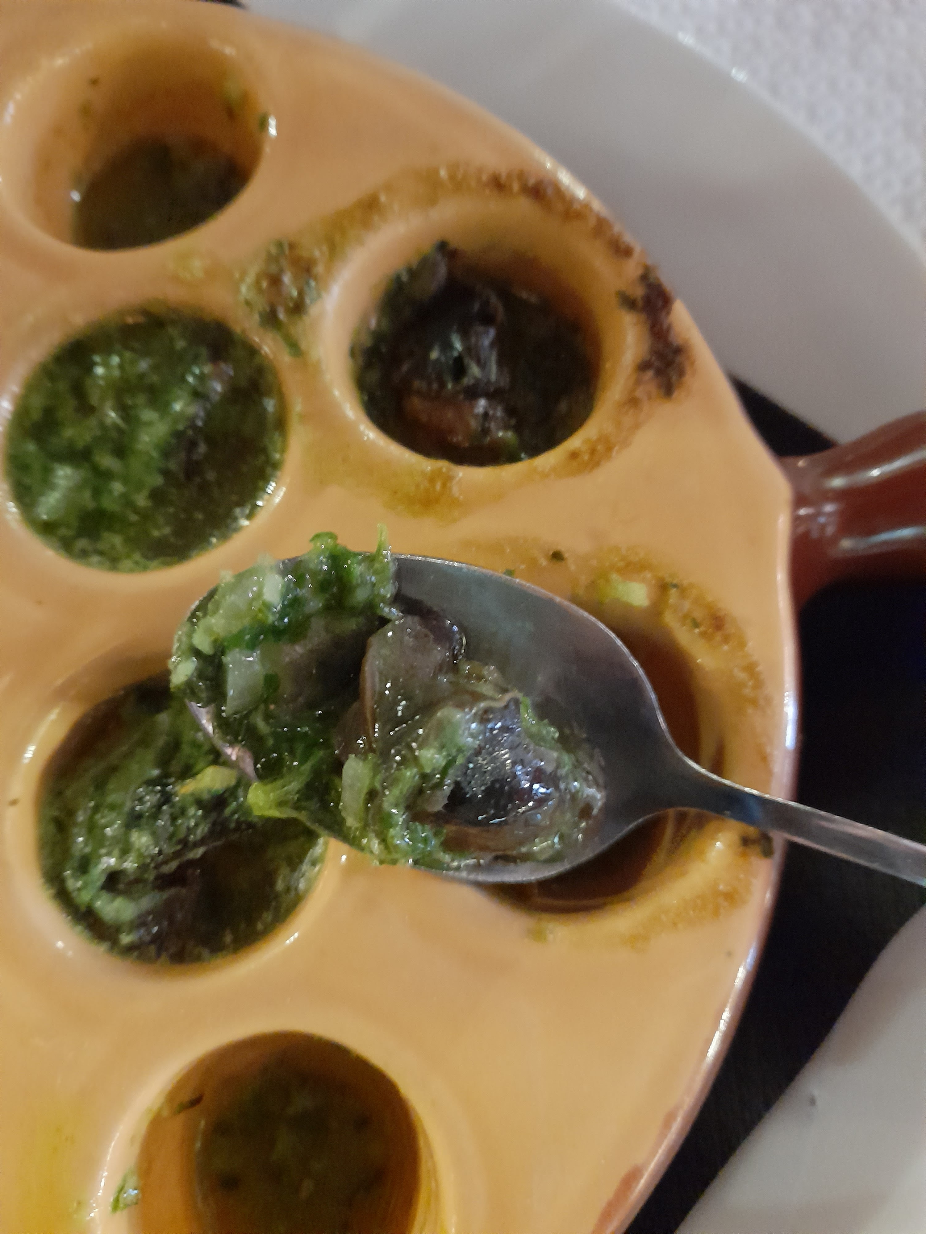 Cadre très jolie et agréable Très bon accueil Plat très correct pavé de bœuf pour Mr et rognon de veau pour moi Un gros plus pour la sauce du bœuf qui est très bonne. Je mettrerais juste un bemole sur le vin rouge du languedoc en quart servi trop chaud et sur les dessert 7.5€ pour un café liégeois une boule qui se bat avec du café 😞 idem pour le chocolat liégeois 😞😞.
