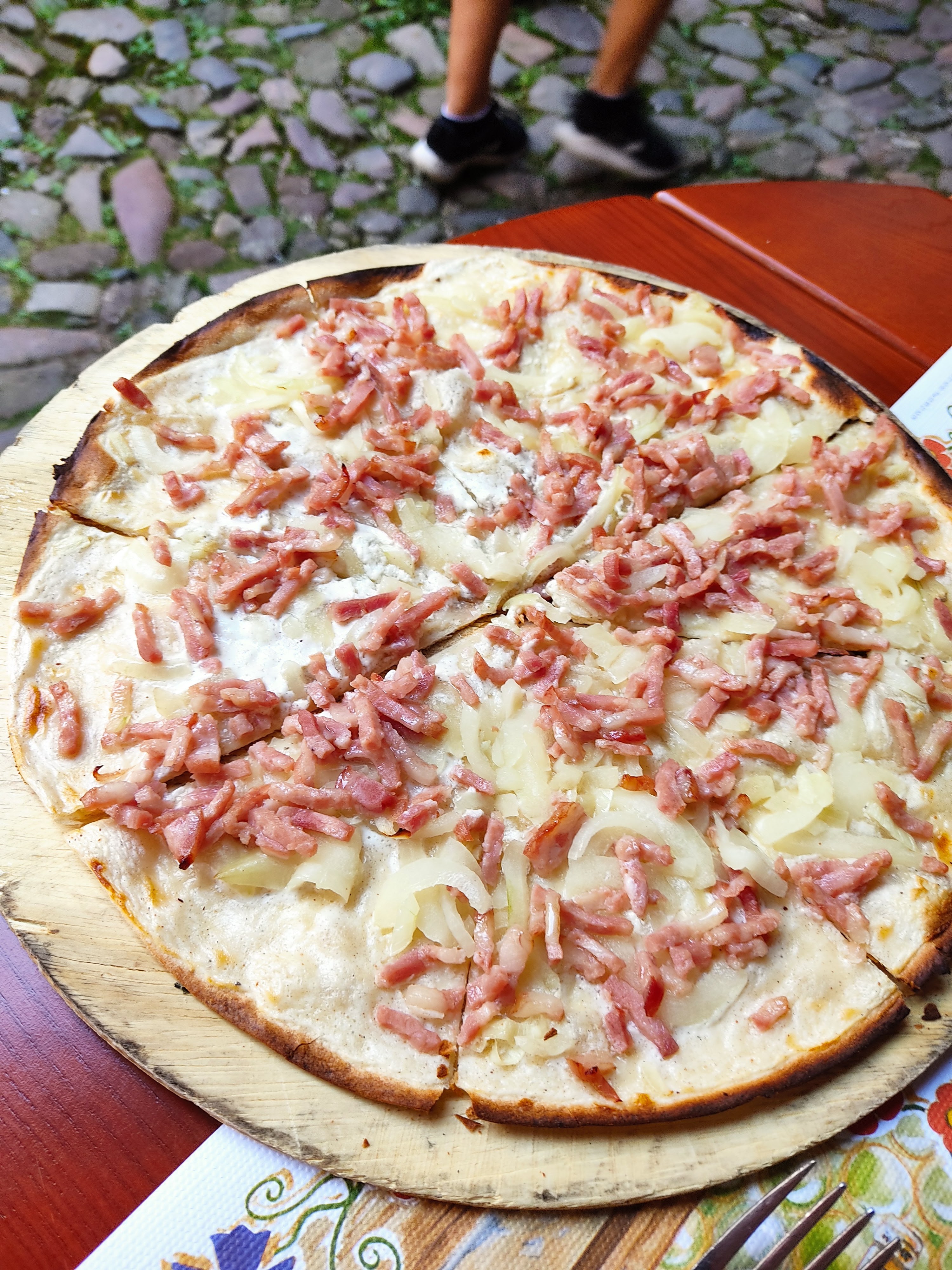La cours est très belle et même la salle a manger a l'intérieur est impressionnante! Nous avons été bien servi et la nourriture était très bonne ! Nous avons pris Flam traditionnelle, a l'emmental et la tête de veau.