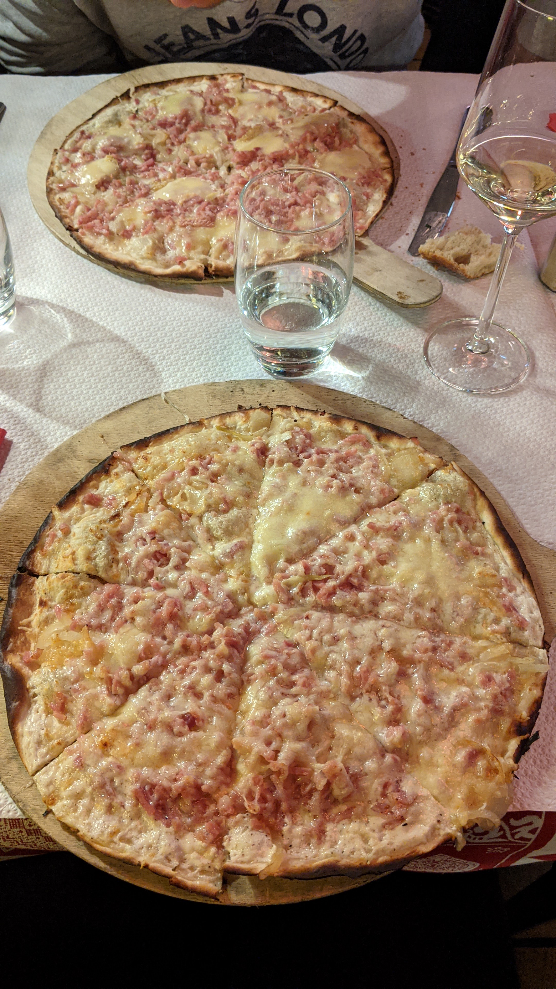 Tartes flambée surgelées, aussi fines que la nappe de table, trop cher pour ce que c’est… celles du Leclerc ne sont finalement pas si mal. Dans un cadre intérieur méli-mélo au cœur d’un super marché de noël… dommage.