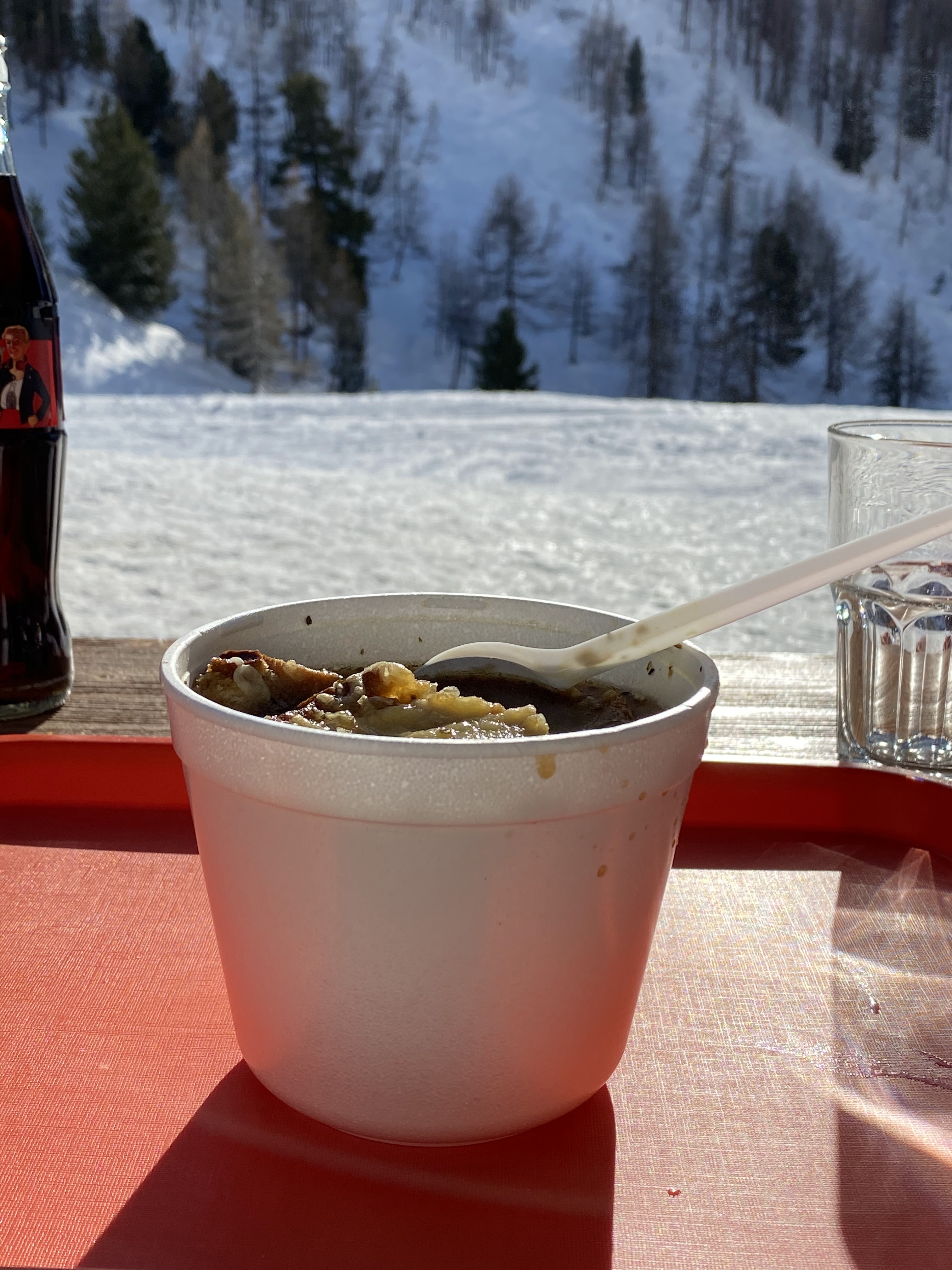 Super chocolat chaud, gaufres bonnes mais légèrement meilleures ailleurs. Service efficace et (sur 4 restaurants) service de restaurant de montagne le plus sympathique. Super ambiance et vues.