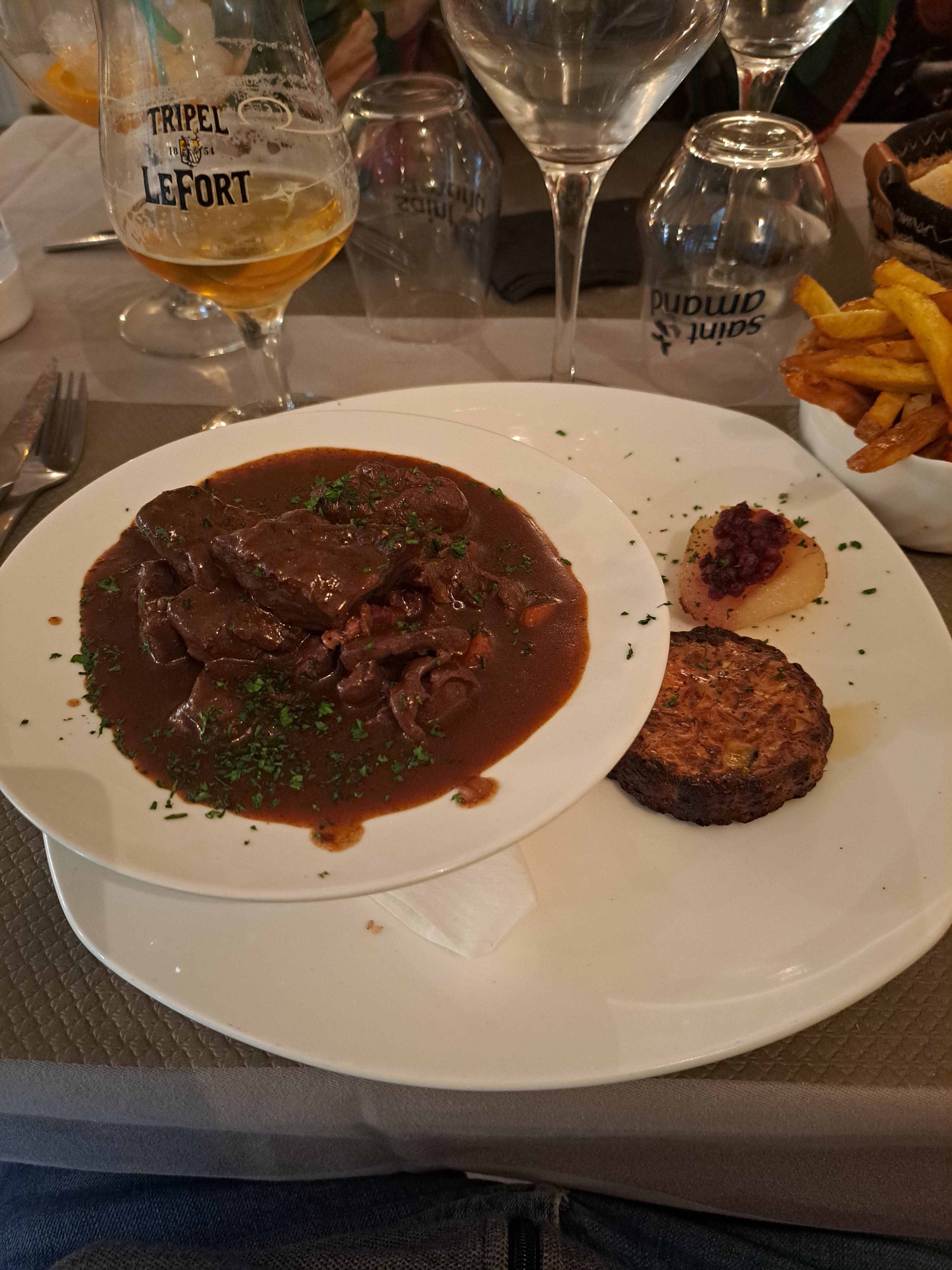 Venus début décembre. Bons plats, des classiques et des plats qui sortent de l'ordinaire comme le Chili, le civet de cerf etc... tout est très bons la planche a partager est res copieuse. Service tres bien, serveur qui debute je pense mais tres serviable. Juste un truc en pleine commande il part parce que un plat dune autre table est pret... Par contre il faisait tres froid dans le resto on est resté avec le manteau tout le repas. Dommage.