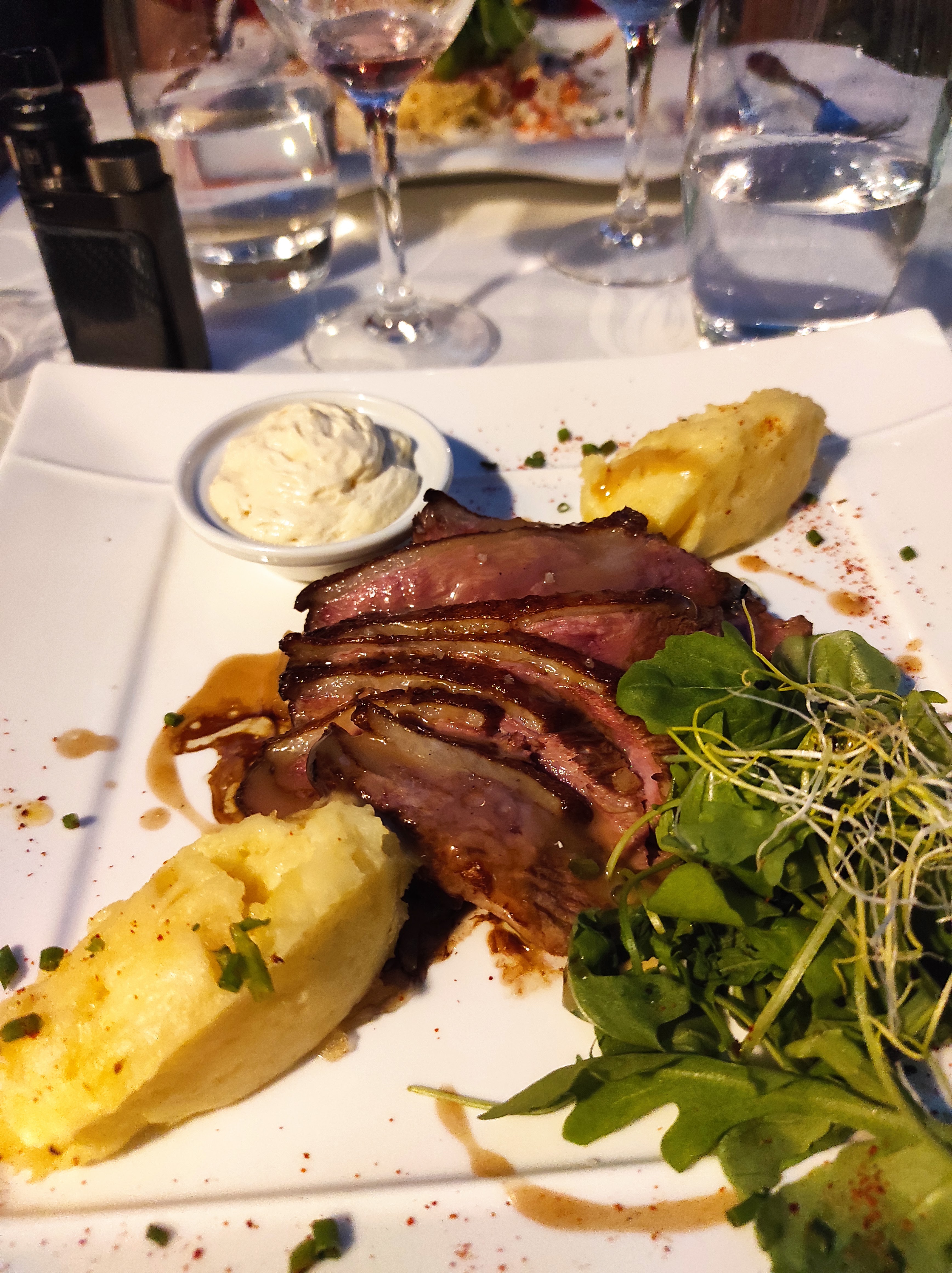 Bœuf immangeable (pourtant nous sommes des adeptes mon mari et moi de bœuf et c'est la première fois que ça nous arrive) avec un gout très fort de gibier. Le personnel n'est pas à la hauteur lorsque le plat déplaît. Ils ne goutent pas et ne cherchent pas de solution. Ils préfèrent vous mettre mal à l'aise en disant que le problème vient de vous alors que ma viande était réellement IMMANGEABLE!!! Enfin, erreur de calcul sur la note en leur faveur bien sûr...