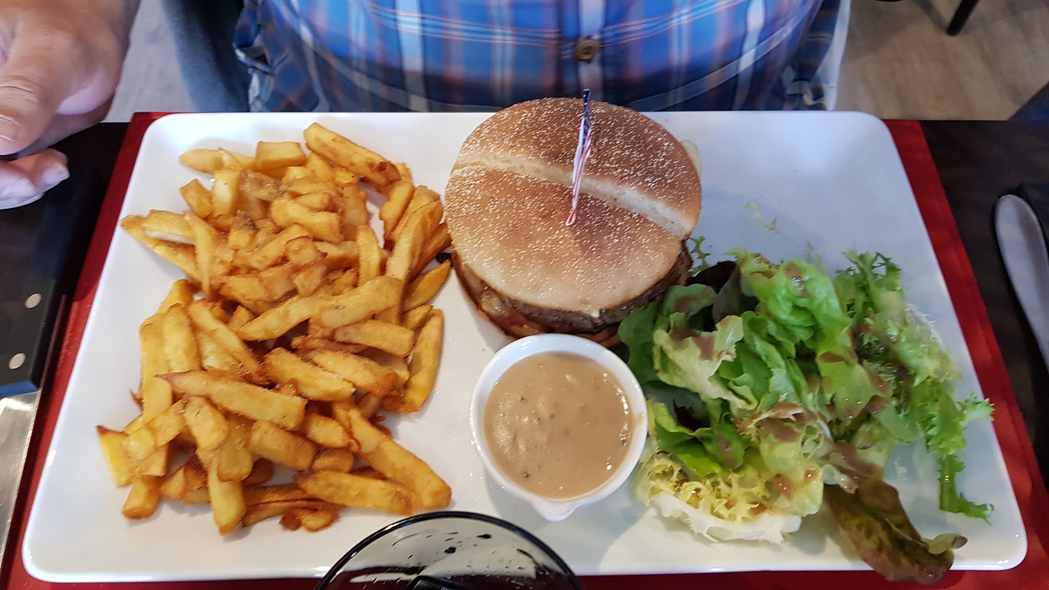 J ai été déçu.... C est bon fait maison ... Mais je m attendais a une viande mariné comme les fameux barbecue américain.. cuits des heures..... Des plats américains..... La serveuse n était pas souriante du tous , froid.... Après on a tous nos jours sans , mais bon ... On était dans le passage pas alaise... Je pense que les produits sont de qualité.... Sauf que les frites sont pas maison