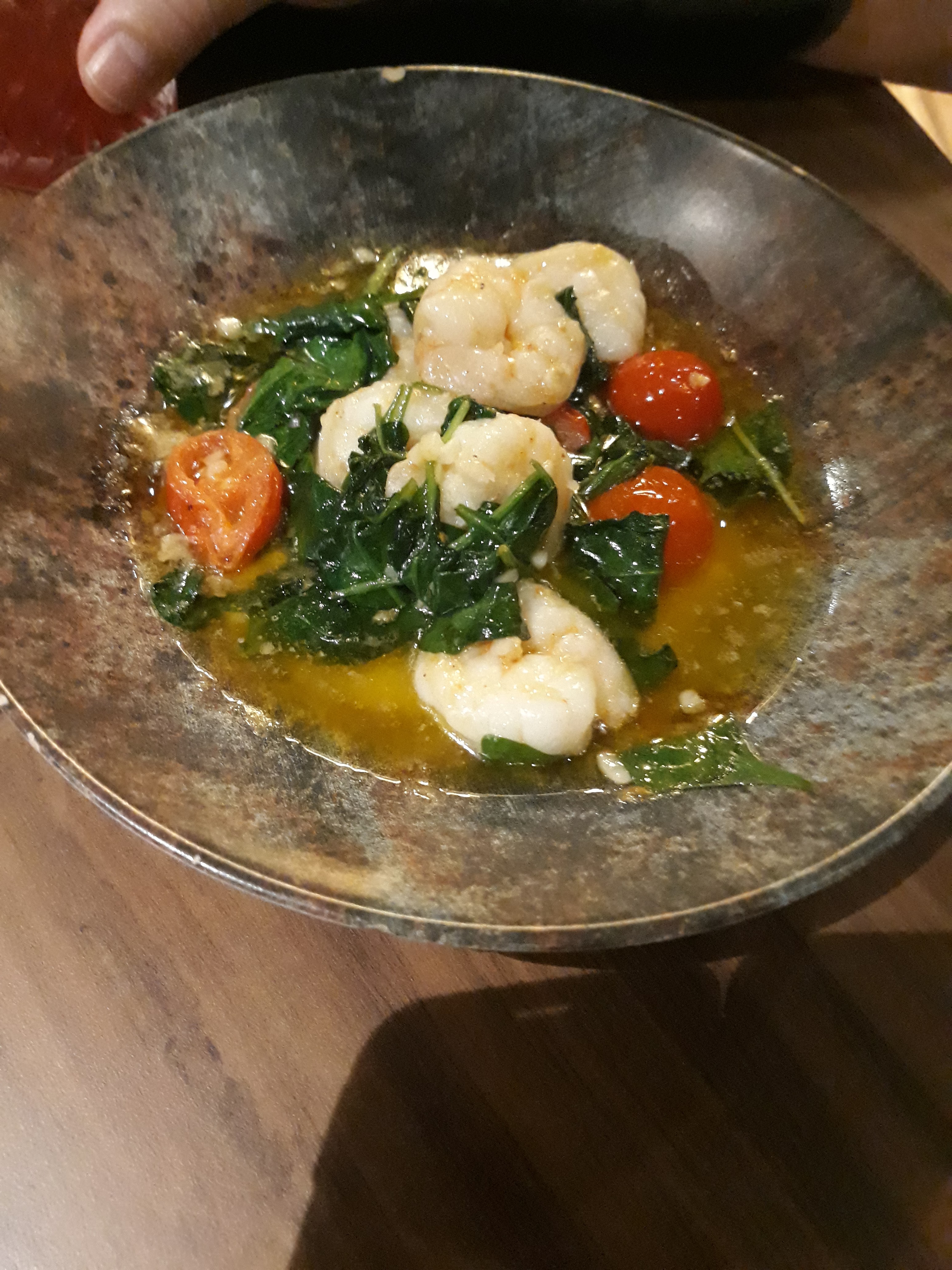 Nous avons commandé un magret de canard au miel et des brochettes de gambas.C'était un délice !!! Très bon accueil. Recommande à 100%