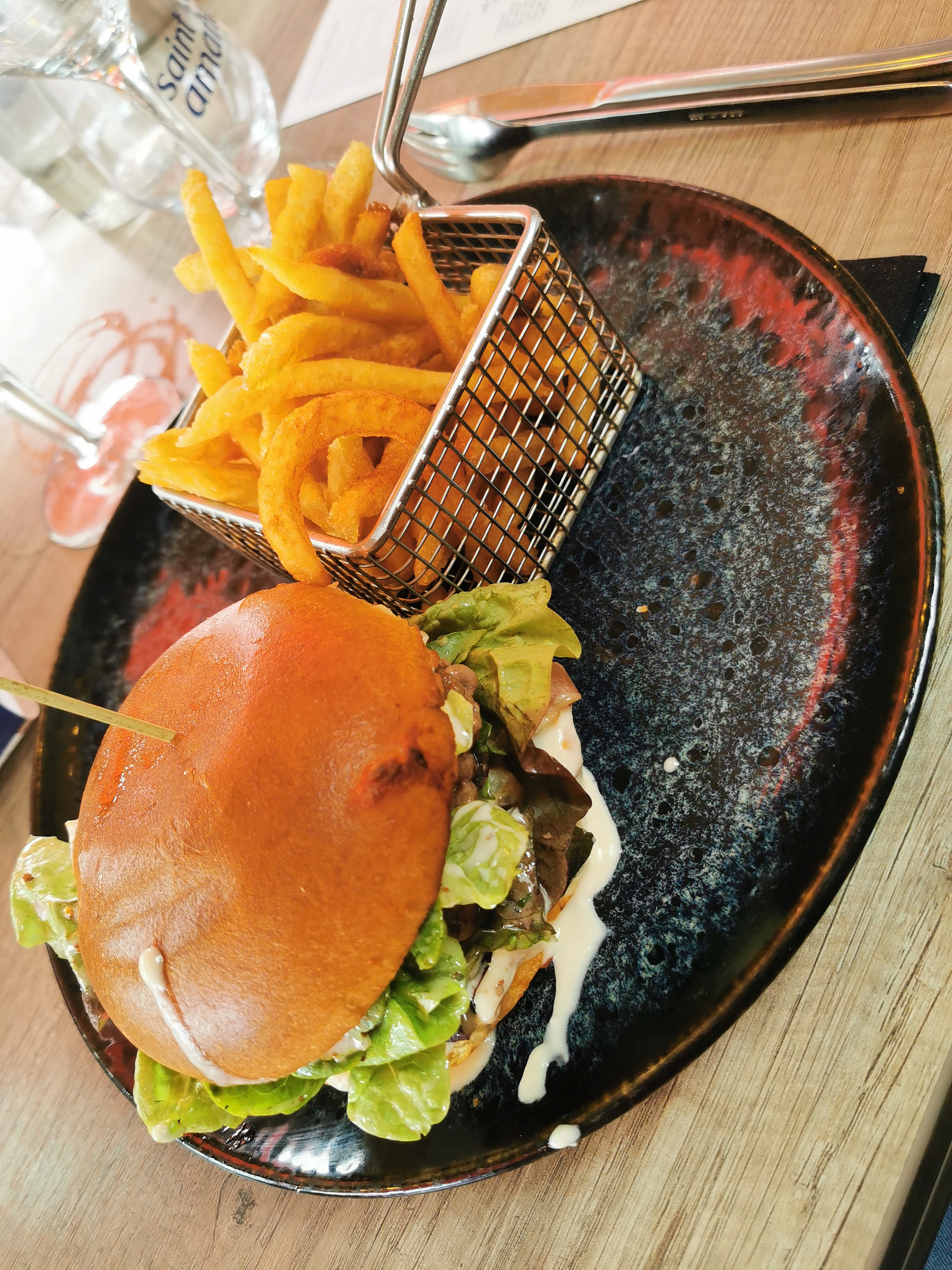 Le restaurant pourrait s’améliorer au niveau table… on a mangé sur table haute avec le soleil donc pas agréable. Vue pas terrible sur parking et niveau nourriture salade chère pour ce que c’est et moules marinières insipides bref l’accueil sympa tout de même mais du coup au niveau nourriture et emplacement non c’est pas ça !