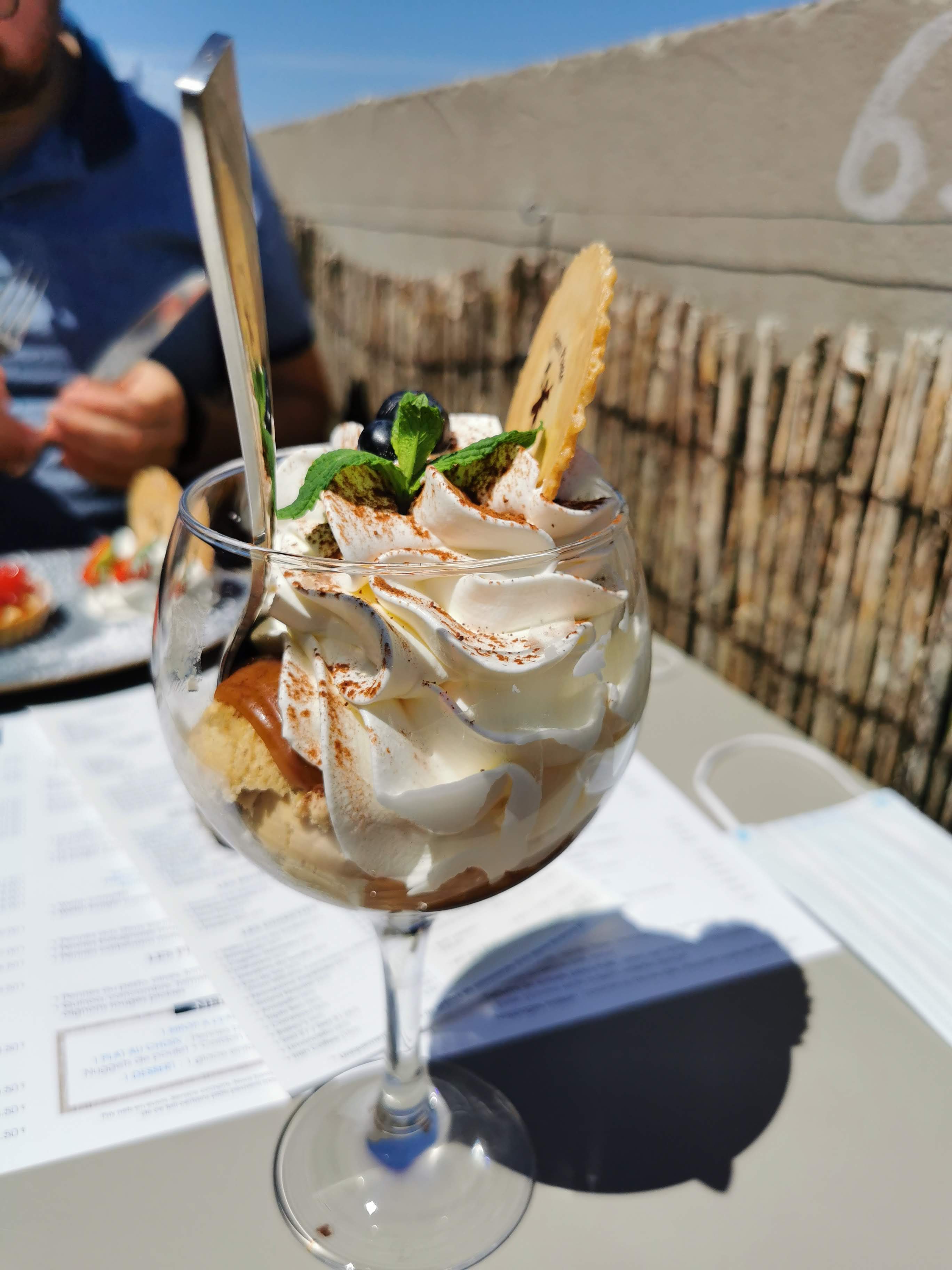 Nous nous sommes arrêtés pour manger des glaces et je dois dire qu'elles étaient très bonnes. Nous avons pris 1 chocolat liégeois et 1 aux 3 parfums différents : passion, citron vert et mandarine. Le goût de la mandarine est exceptionnellement bon ! J'ai donné un 3 étoiles car aucune serviette n'était donnée ni un verre d'eau avec la glace. De plus, ma cuillère n'était pas totalement propre.