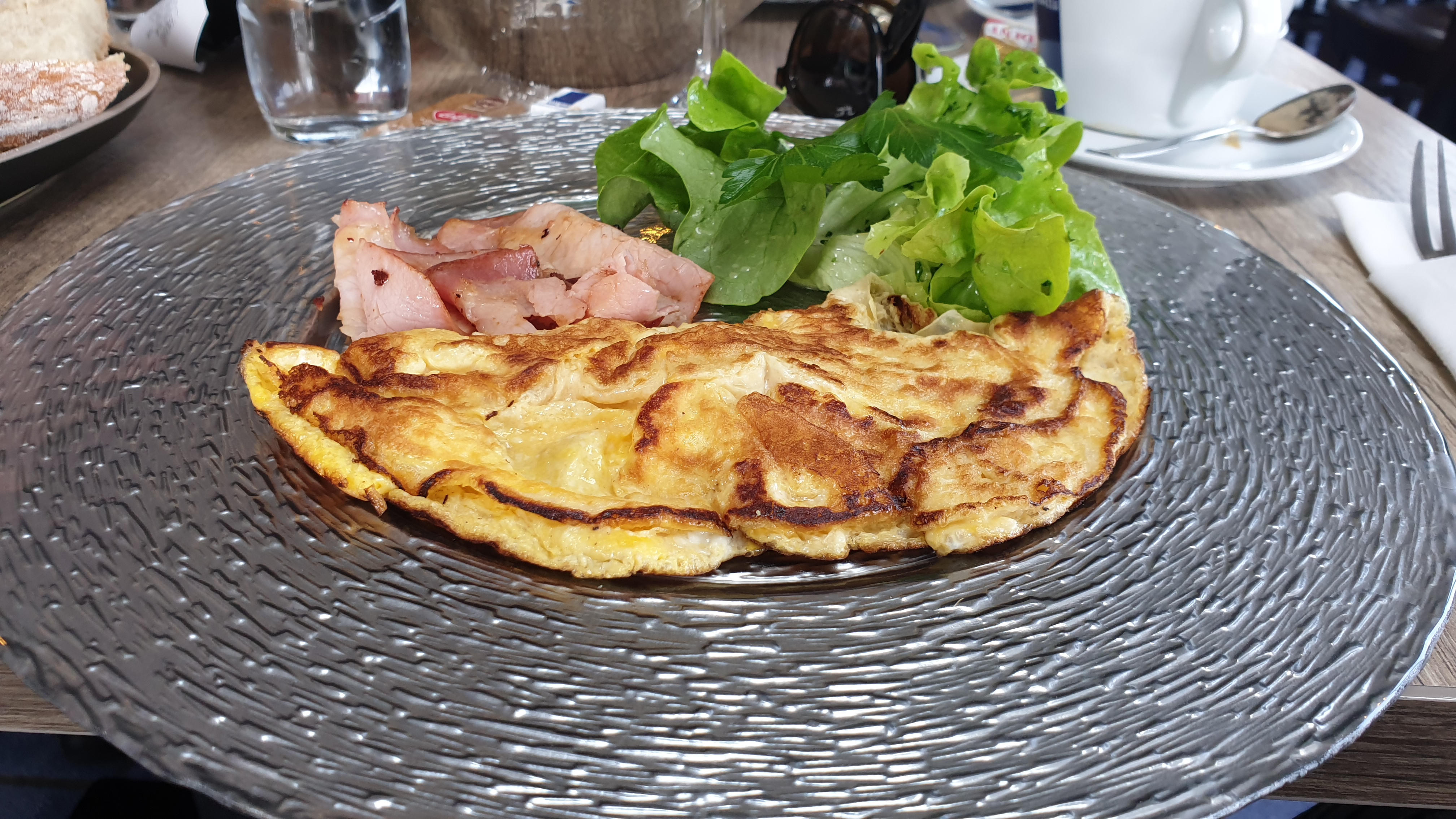 Le meilleur petit déjeuner que j'ai jamais pris en France ! Délicieux petit bol de salade de fruits, jus d'orange, baguette fraîche avec sélection de confitures et nutella PLUS une omelette légère et moelleuse au bacon. Et le Grande Creme Café a totalement frappé, tellement nous en avons commandé un autre ! Tout cela, avec un personnel sympathique et attentionné et une vue sur la mer. Que pourriez-vous demander de plus?