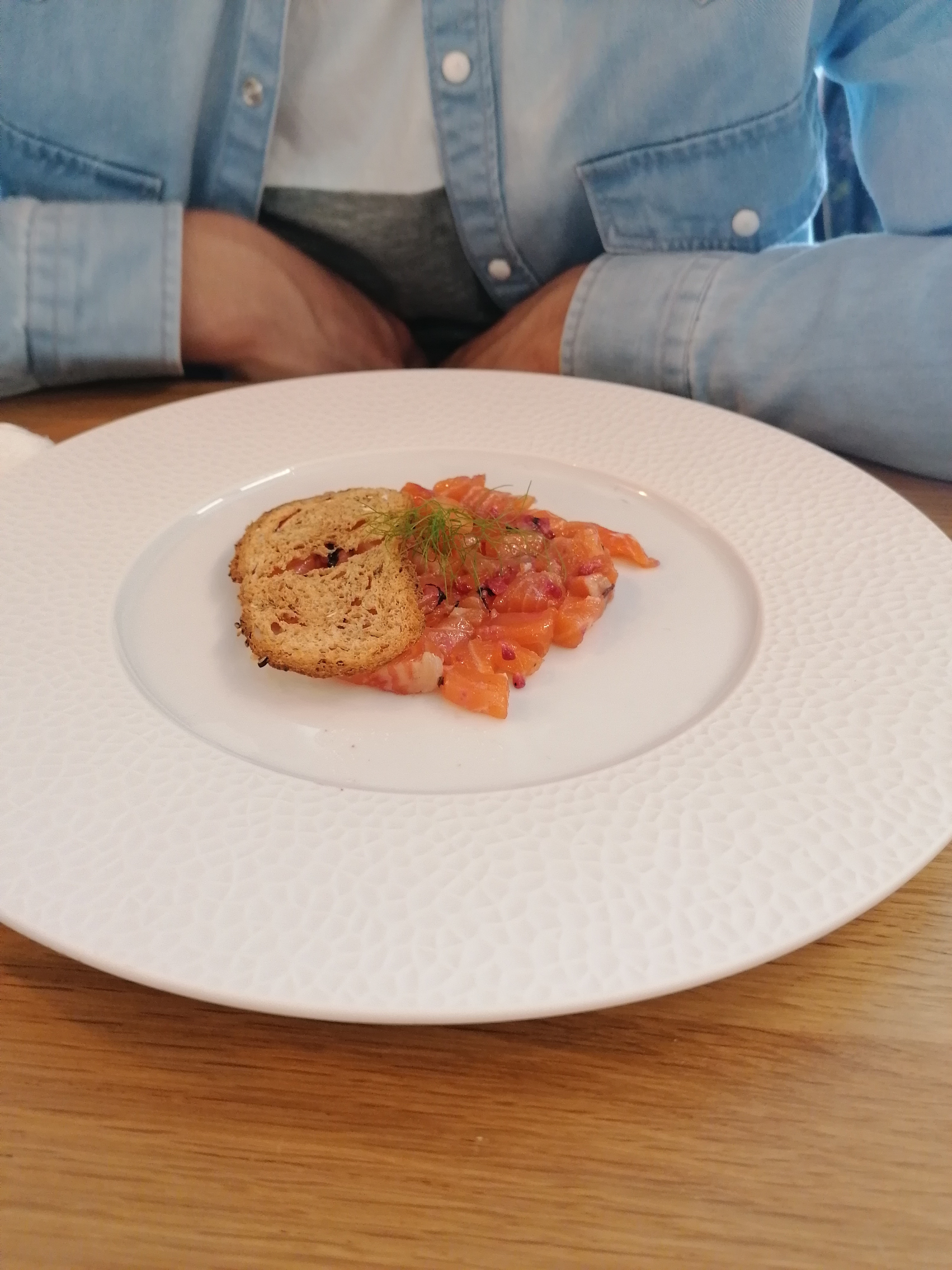 Excellente cuisine, étonnante pour le prix du menu ! (écrevisses, saumon ...) Très jolie deco et belle table, vaisselle etc tout est raccord c’est rare ! Seul petit point négatif : le bruit qui a parasité nos échanges à table. Placement pas très judicieux entre l’escalier et la porte d’entrée ...Jolie petite attention de l’équipe qui a placé une bougie sur le dessert de maman dont c’était l’anniversaire ! La prochaine fois on veut la photo avec le chef ! 😁