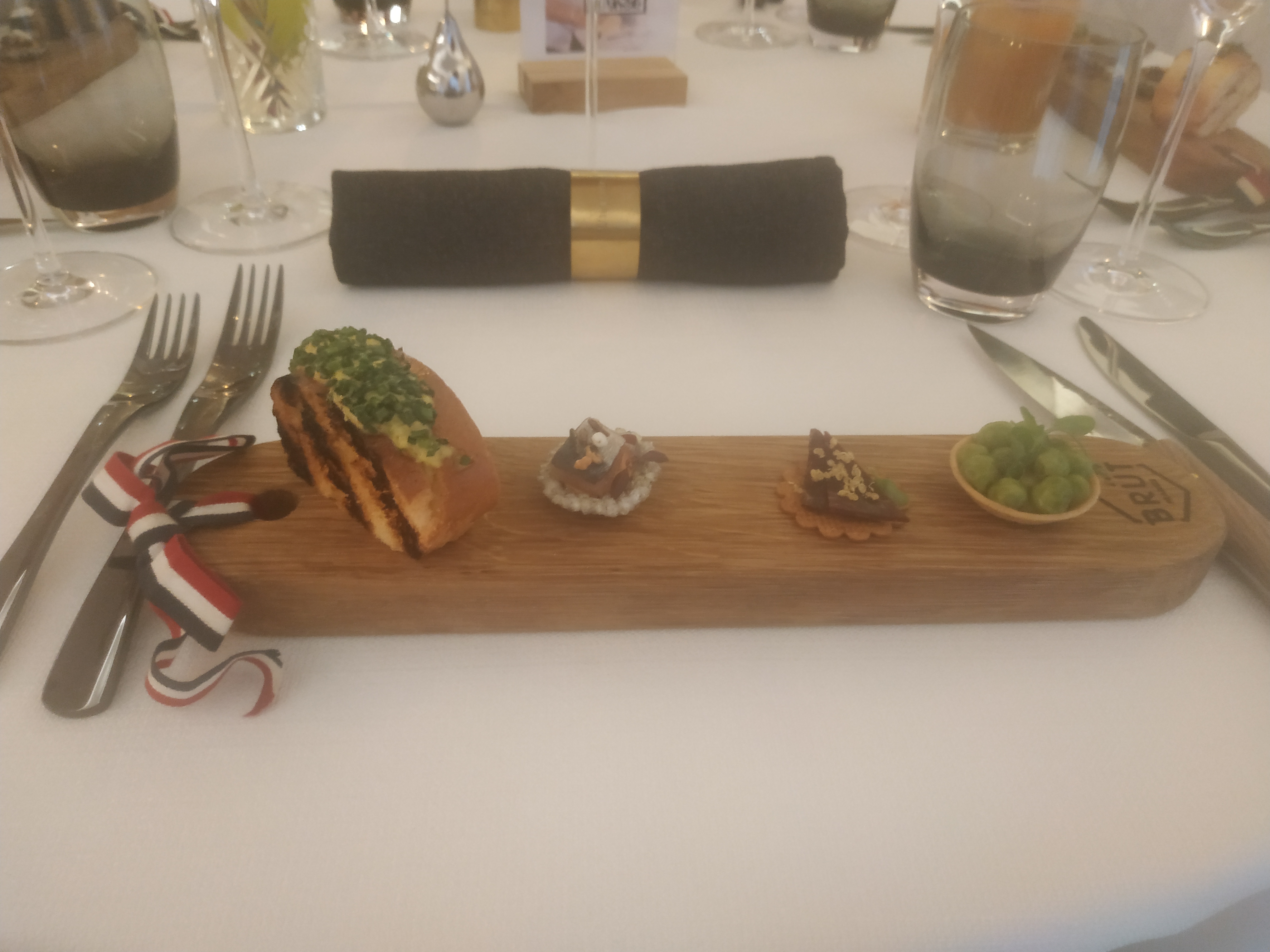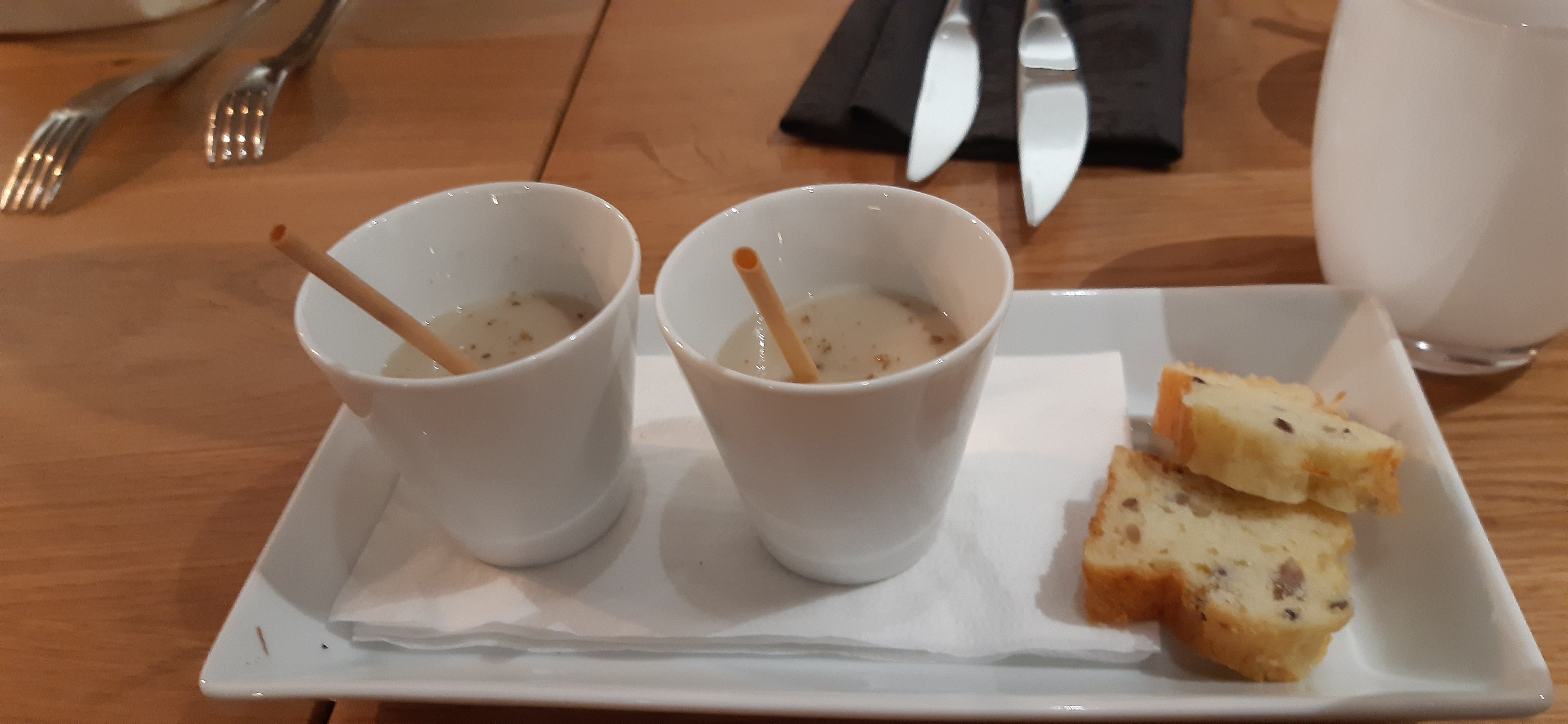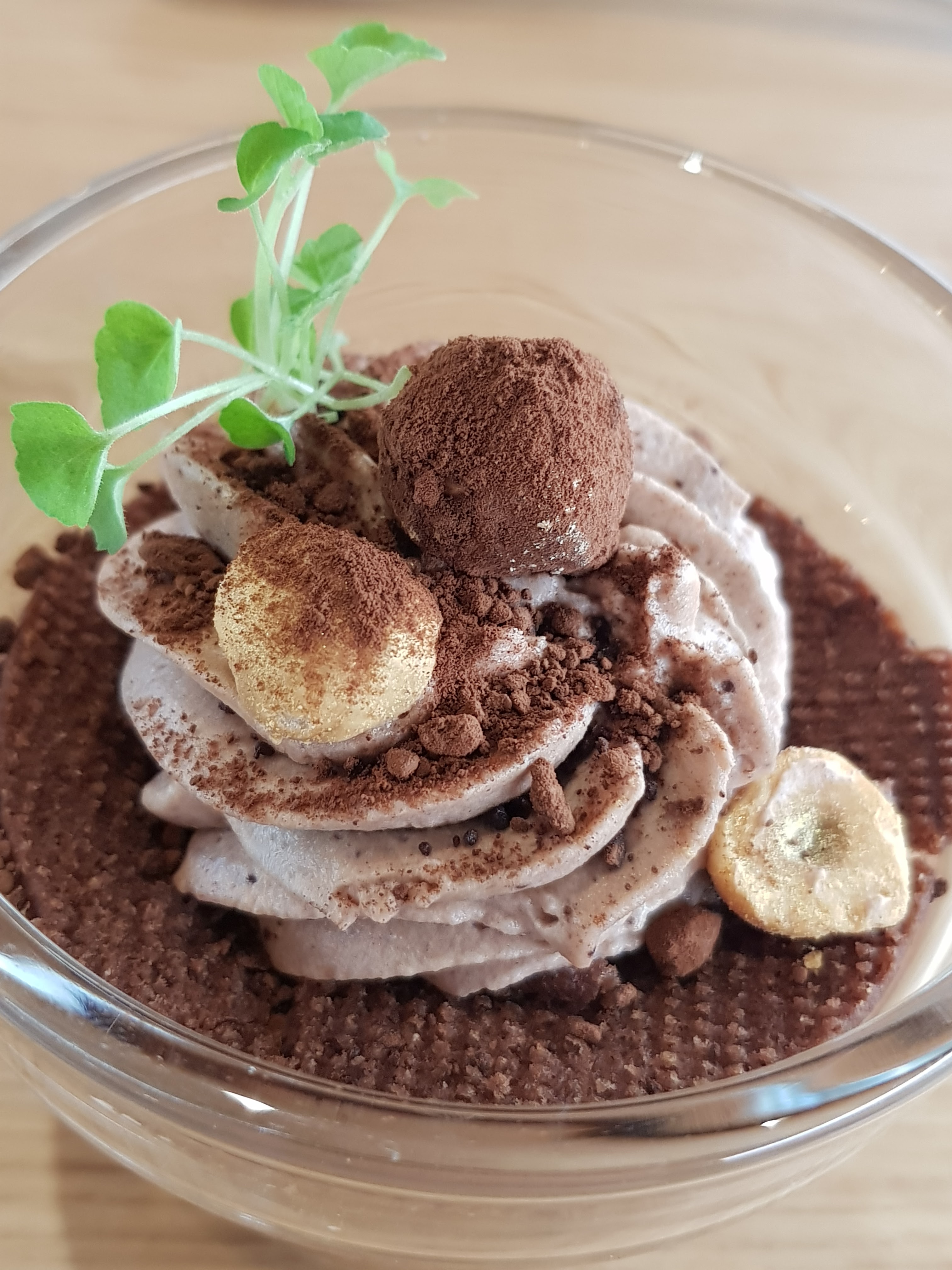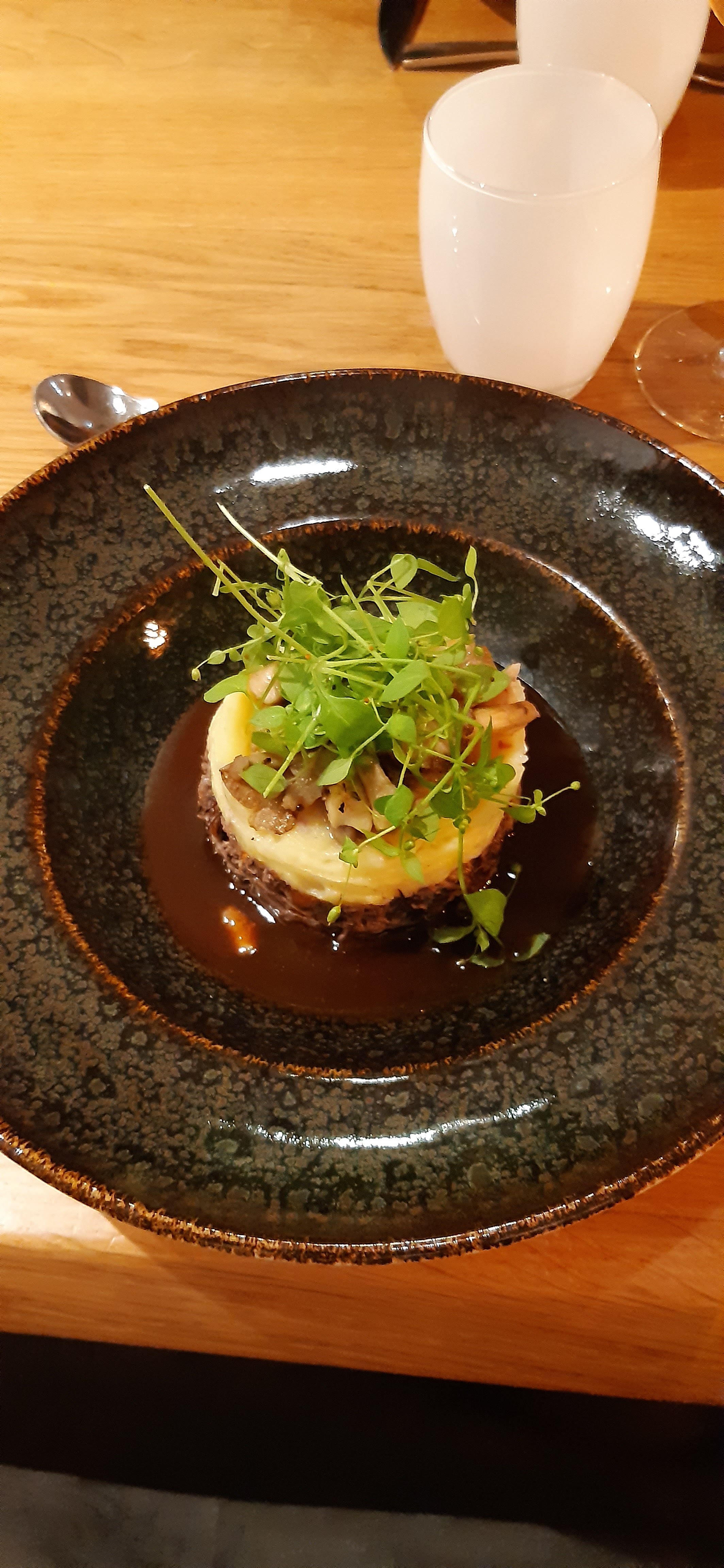 Intéressant de ne pas savoir ce que l on va apprécier ou pas. Pour ma part j' ai aimé l émulsion aux cèpes et lardon. Le plat suprême de volaille avec son quinoa et sa sauce trompette de la mort également un peu moins fan du dessert quand on n aime pas trop le chocolat. Tout ça pour la modique somme de 19 euros mais c était un midi