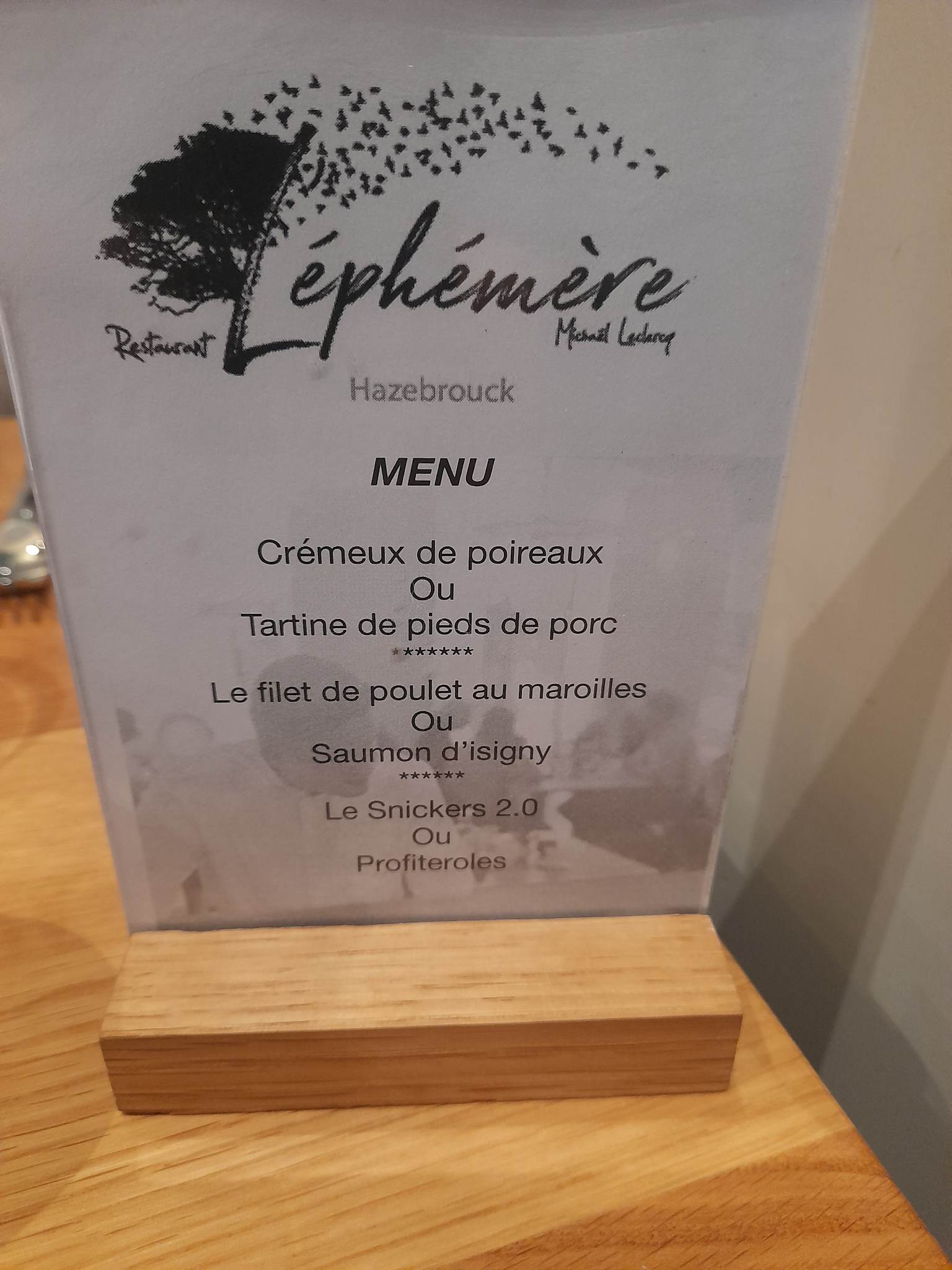 5 étoiles sans aucune hésitation. Nous sommes clients régulier au sein de ce restaurant. Que ce soit pour les affaires, comme les dîners en couple mais aussi entre amis/famille. Nous y allons tous les mois. A chaque fois aucune mauvaise surprise bien au contraire. Carte d'excellente qualité, également les ingrédients utilisés et local!! Mr Leclercq est un excellent chef cuisinier mais également l'ensemble de son équipe autour de lui. Si j'ai une adresse à recommander sur Hazebrouck et dans le secteur c'est bien l'Ephémère. Il y'a une partie bistronomique très sympathique mais également un second restaurant en interne qui s'appelle L'Instant, qui lui est gastronomique. A bientôt ;-) !