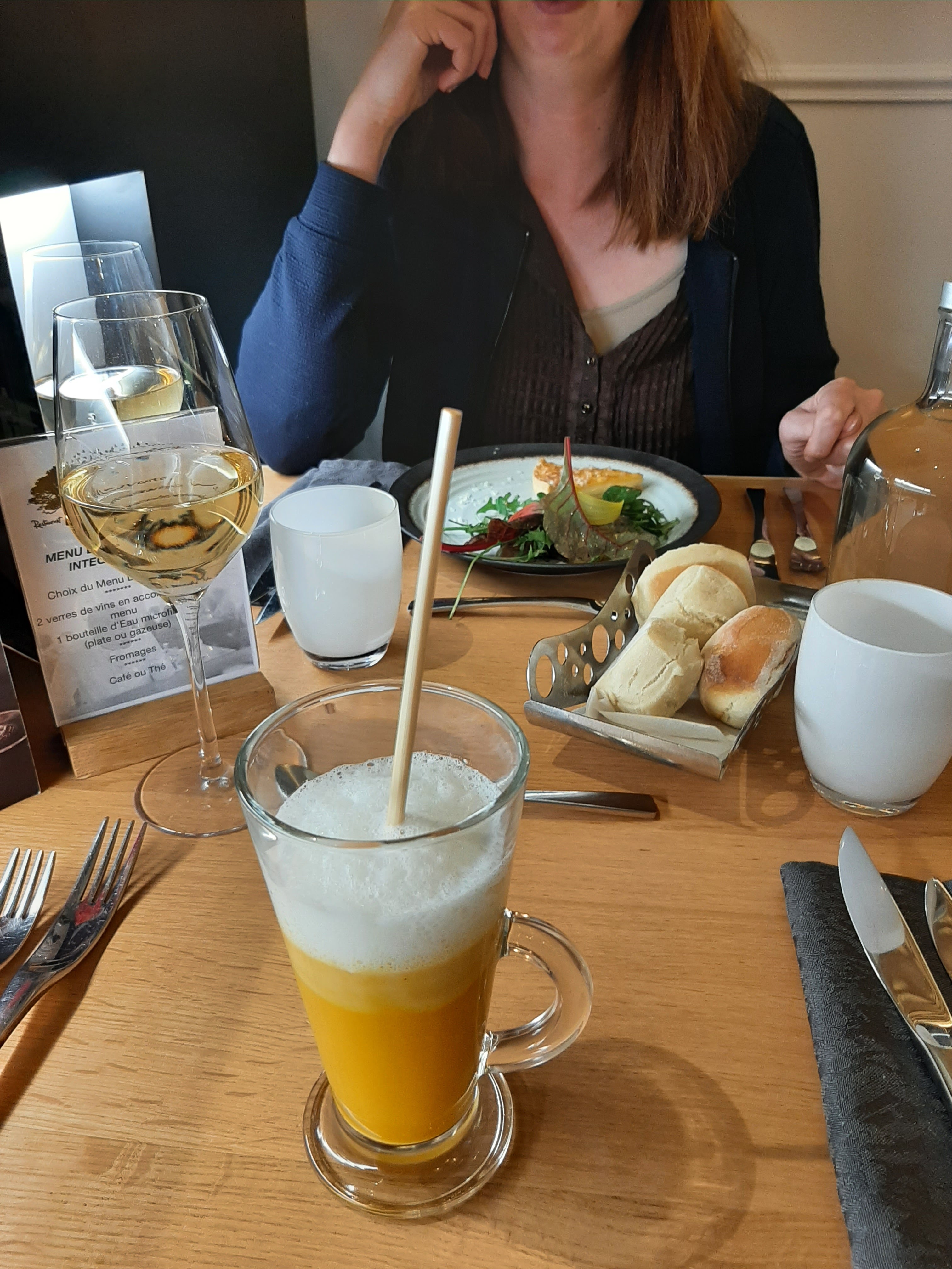 Nous apprécions toujours autant déjeuner chez vous. Le menu du jour proposé, nous a enchanté (mon dextro du soir n'avait jamais été aussi bas...) et l'équilibre était parfait. Crème de potiron, coquilles Saint-Jacques, riz au lait vanillé... Que du bonheur... Merci pour l'accueil et la convivialité.