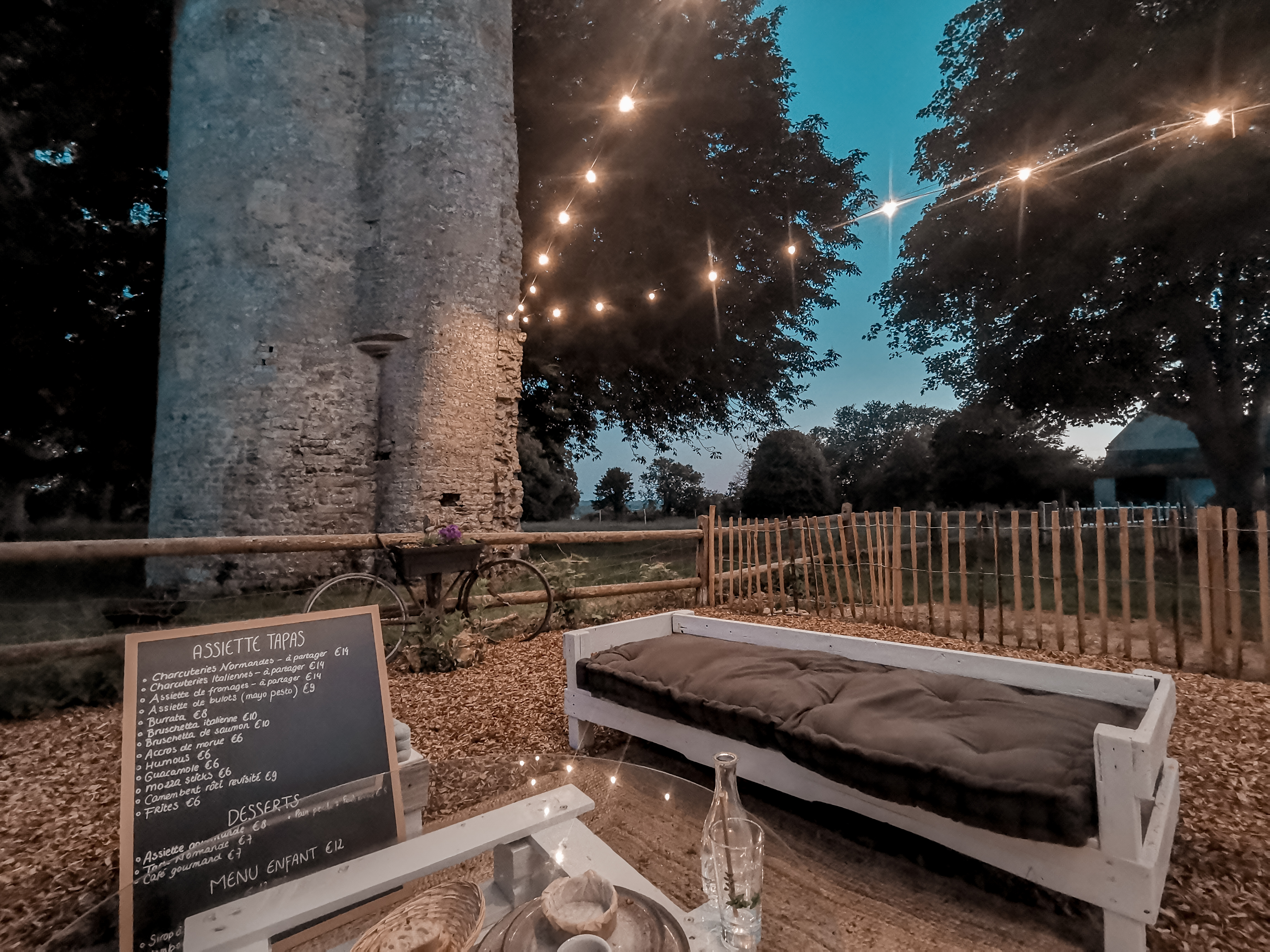 Merci à Baptiste et Jonathan qui ont passé tant de temps à échanger avec nous et qui nous ont expliqué leur projet ainsi que l’histoire du lieu et de leur famille. Le restaurant est charmant (salle à l’intérieur existante si la soirée est frisquette), la cuisine est délicieuse, le service incroyable. Tous les ingrédients sont ici réunis pour passer une soirée magique. Nous repartons des étoiles plein les yeux inspirés par cette énergie incroyable qu’ils nous ont communiqué. Nous n’avons qu’une hâte maintenant c’est revenir en Normandie pour suivre leurs avancées. A faire absolument si vous passez dans le coin, que vous êtes férus d’histoire et que vous souhaitez financer un très beau projet en buvant des cocktails et en mangeant des mets délicieux 😉