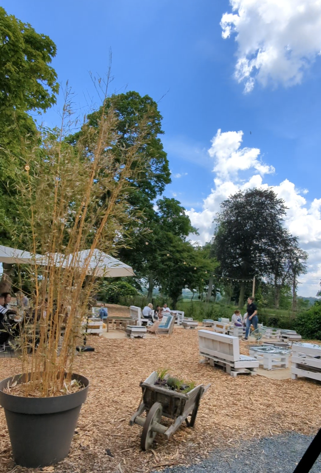 Déjeuner très sympathique au soleil! Les plats sont locaux et délicieux. Les enfants ont pu jouer dans le parc. Parfait pour les familles! Pensez bien à réserver à l’avance pour les jours de grosse affluence! Achat de boissons produites sur place possible.