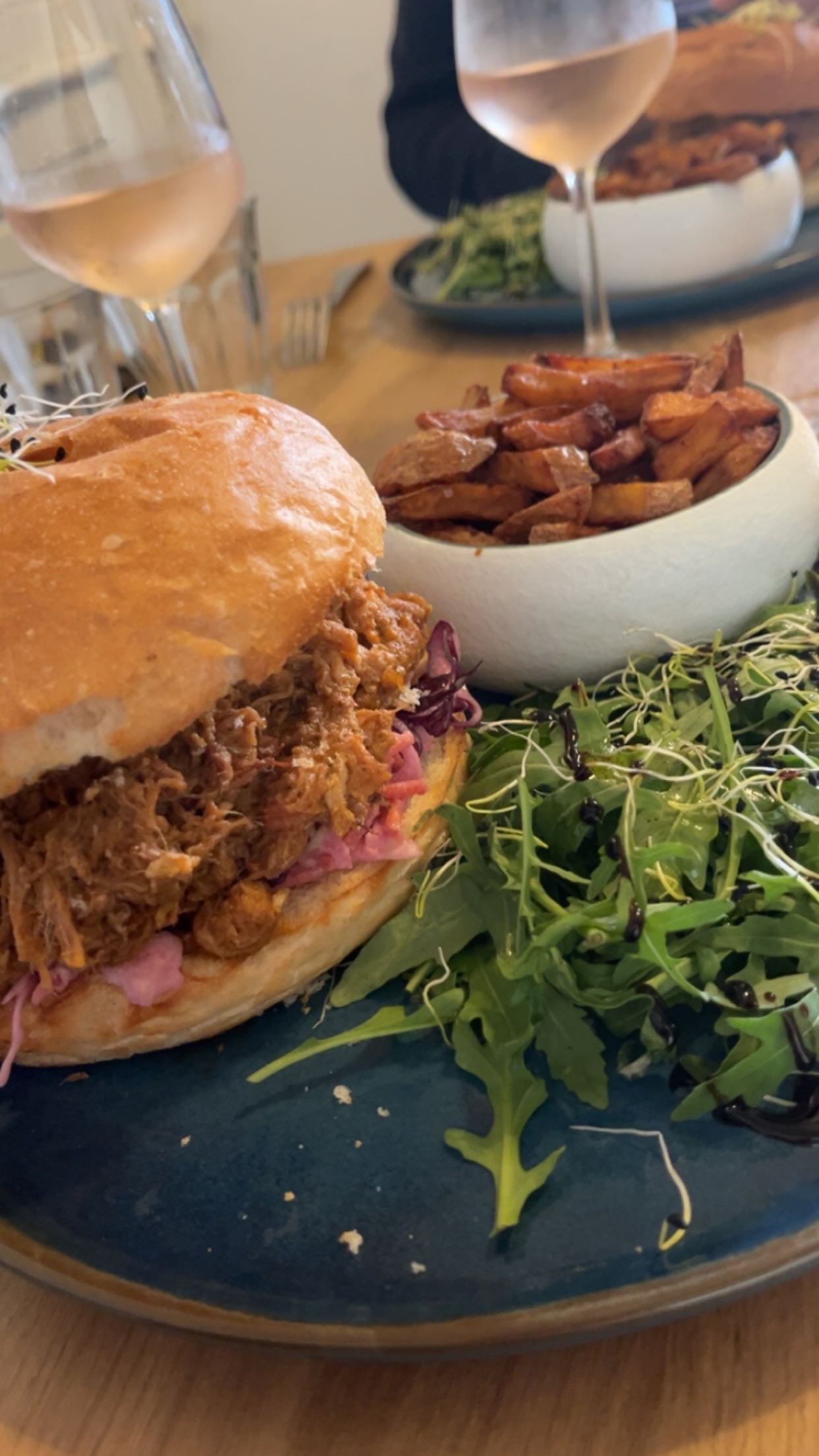 En vacances sur les plages du débarquement, nous avons voulu tester ce restaurant éphémère découvert au hasard de la planification de nos trajets, situé près des plages d’Omaha Beach, un cadre atypique avec un décor top…le repas au top avec un burger de porc effiloché très bien servi et très bien assaisonné, une entrecôte très bien cuite et pour mon fils des frites avec des tenders de poulet en très bonne quantité et bien cuisiné. Les serveurs sont accueillant et serviables. Réservation obligatoire si vous voulez une table.