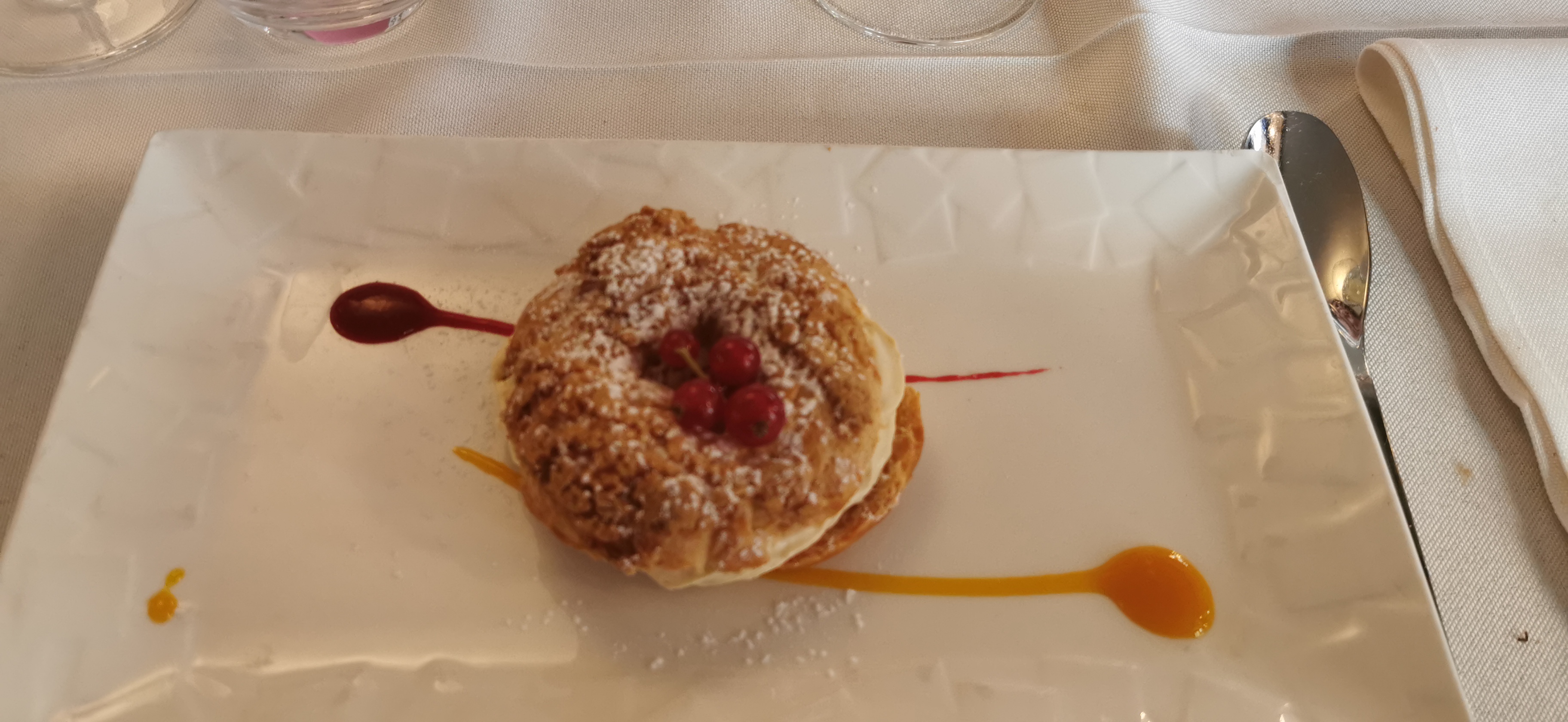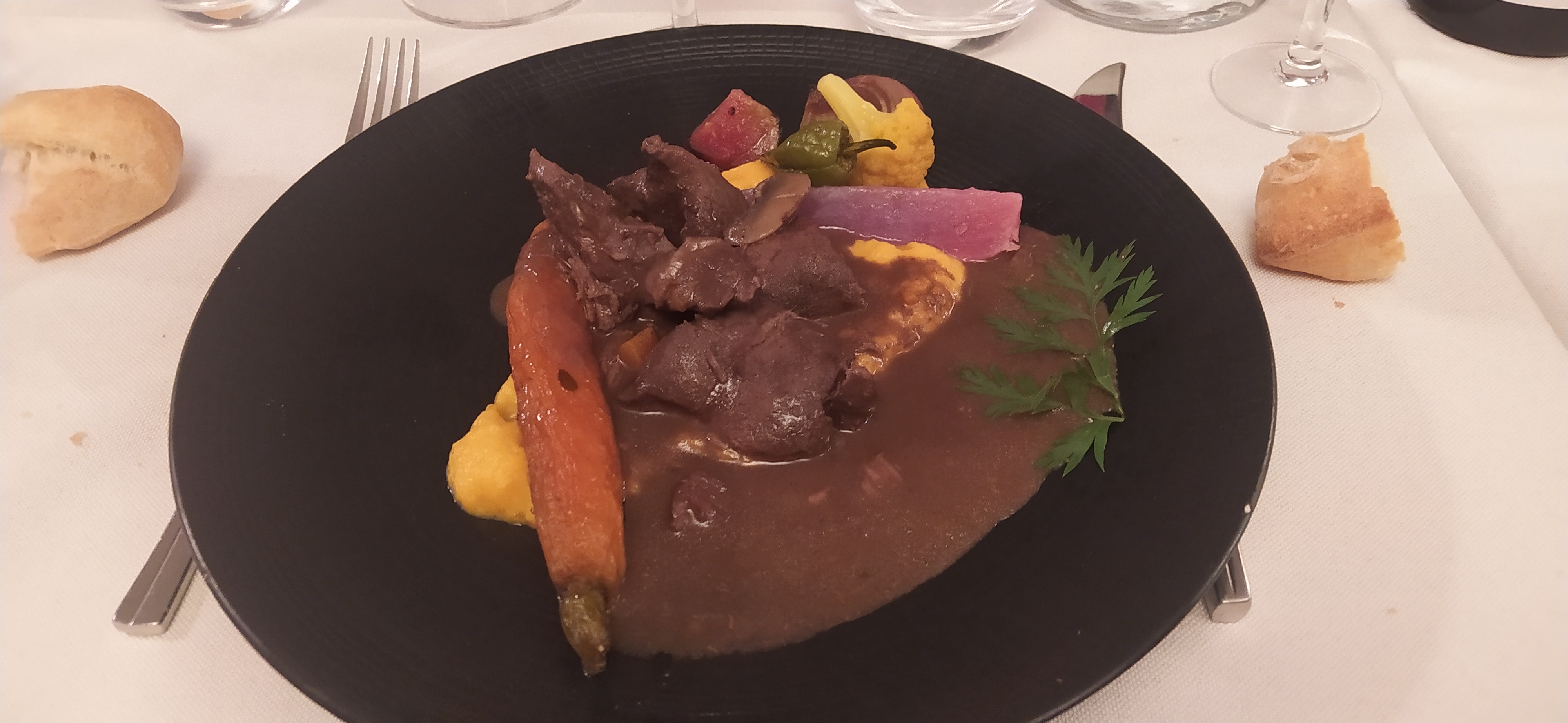 Une fois sur deux l'expérience au restaurant est très bien et une fois sur deux elle est à peine passable. cette fois-ci la déception venait notamment de la truffe qui n'avait absolument aucun goût, la viande un peu maigrichonne mais excellente et un mille-feuille avec peu d'intérêt