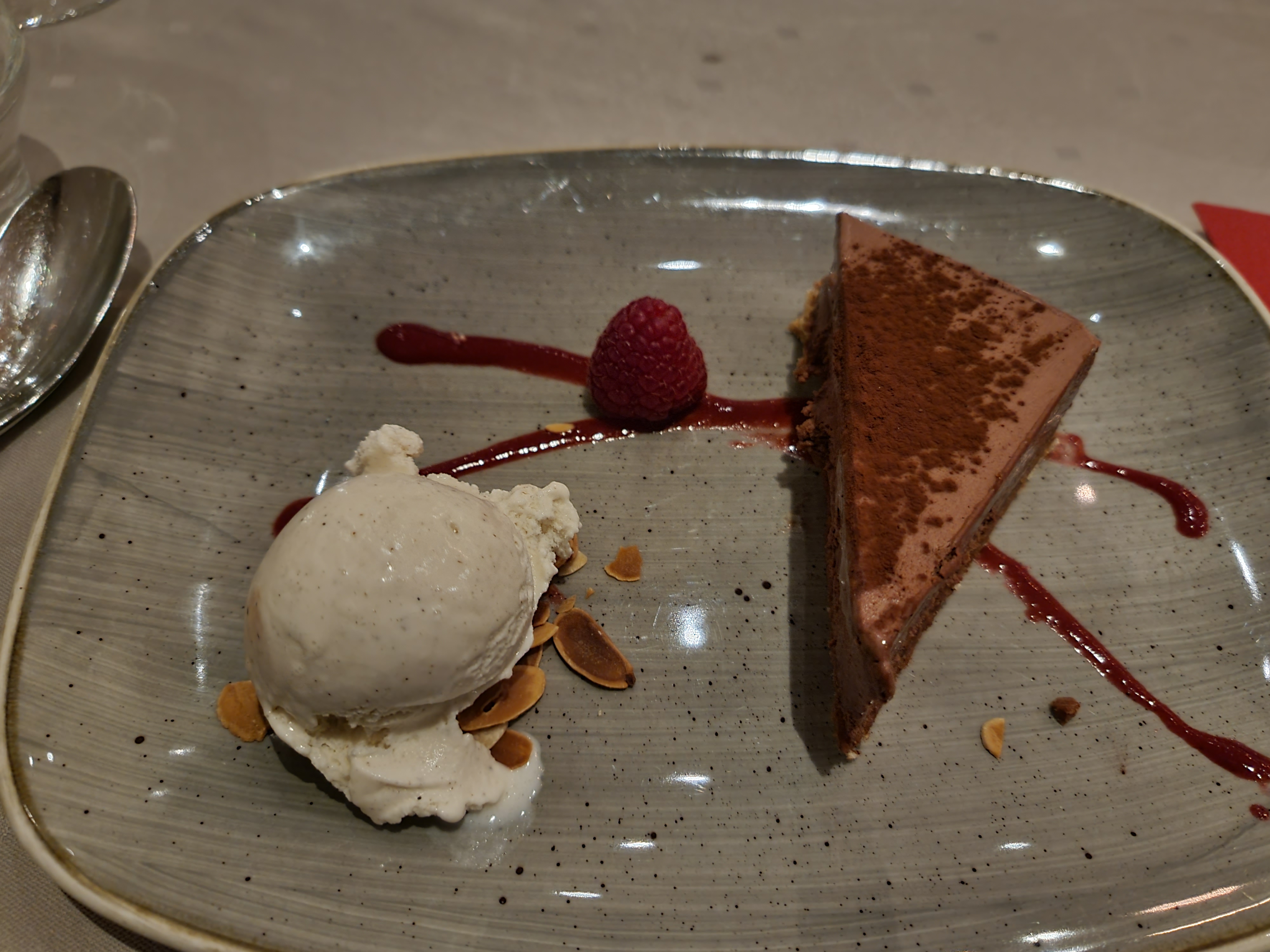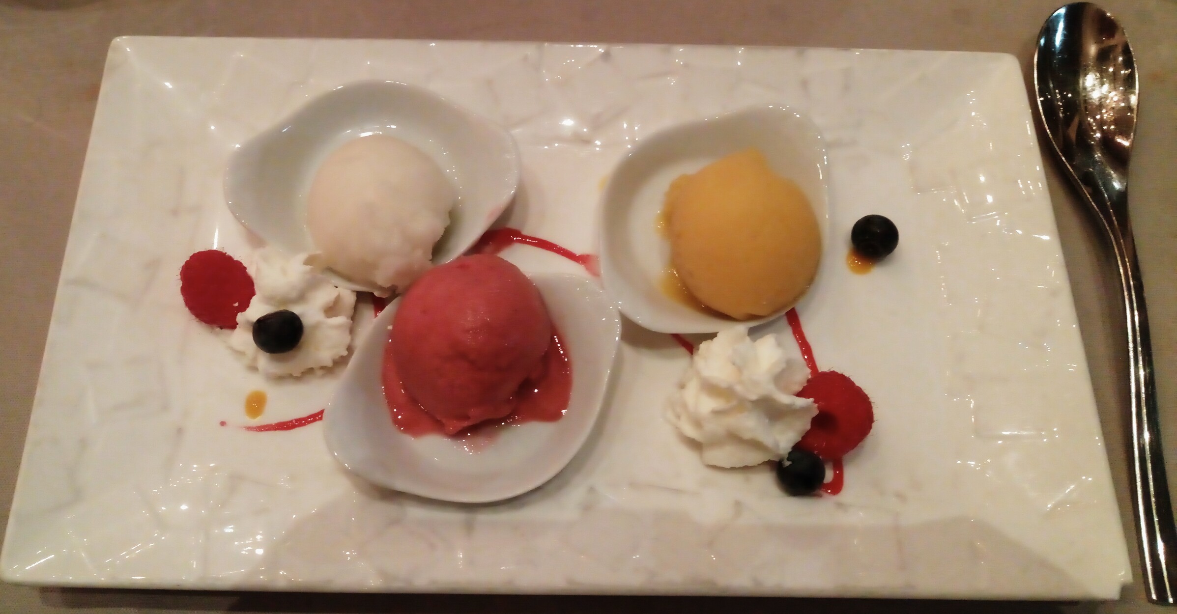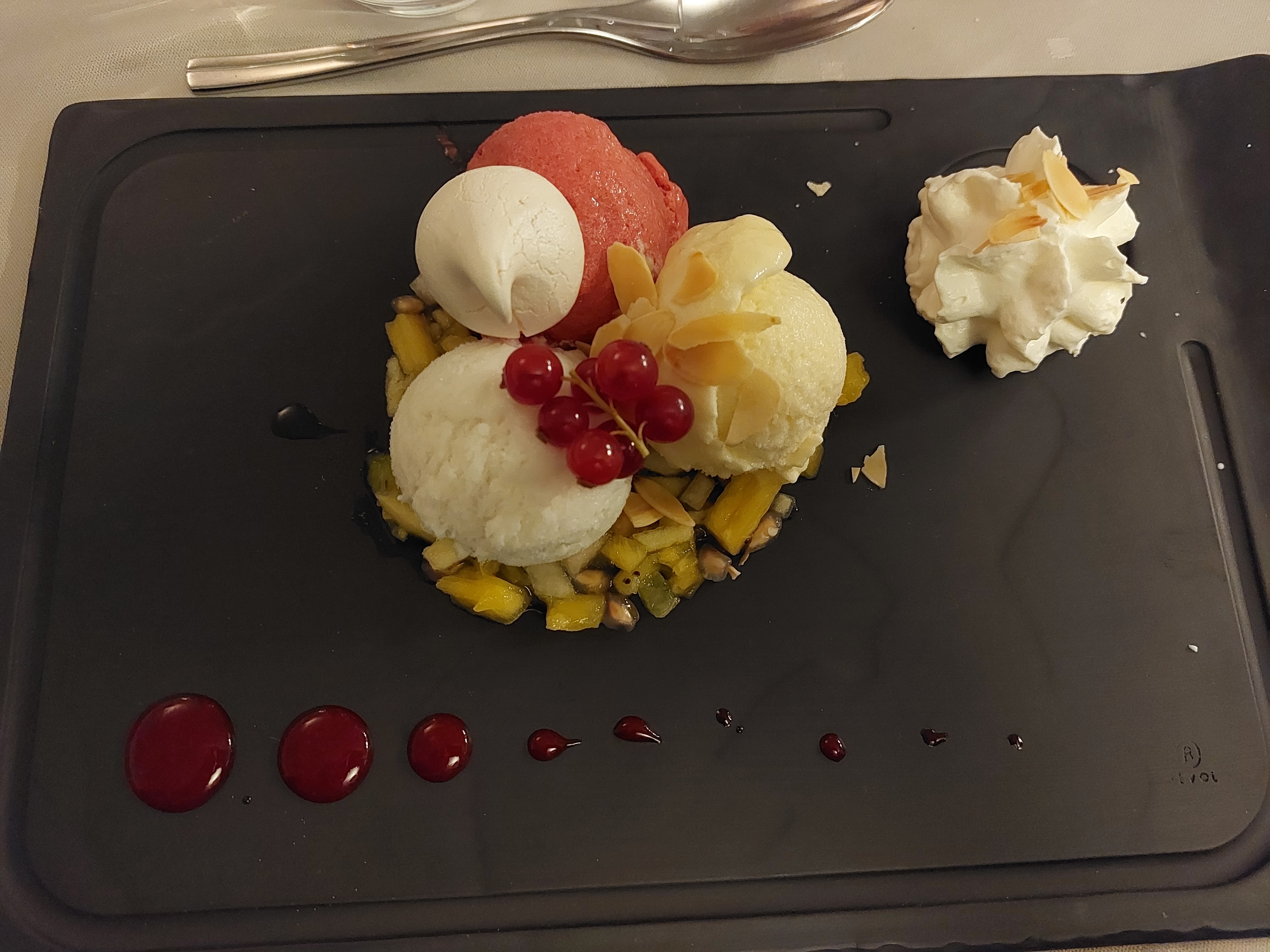 Je suis très déçue, j’étais très mal, le restaurant est mal climatisé, j’ai vraiment regretté avoir pris un menu sachant que j’avais trop chaud. Les Canelloni sont trop salés et malheureusement les sorbets sont tellement sucrés que ça m’a saturé le goût je ne sais même pas si c’était framboise fraise ou autre …