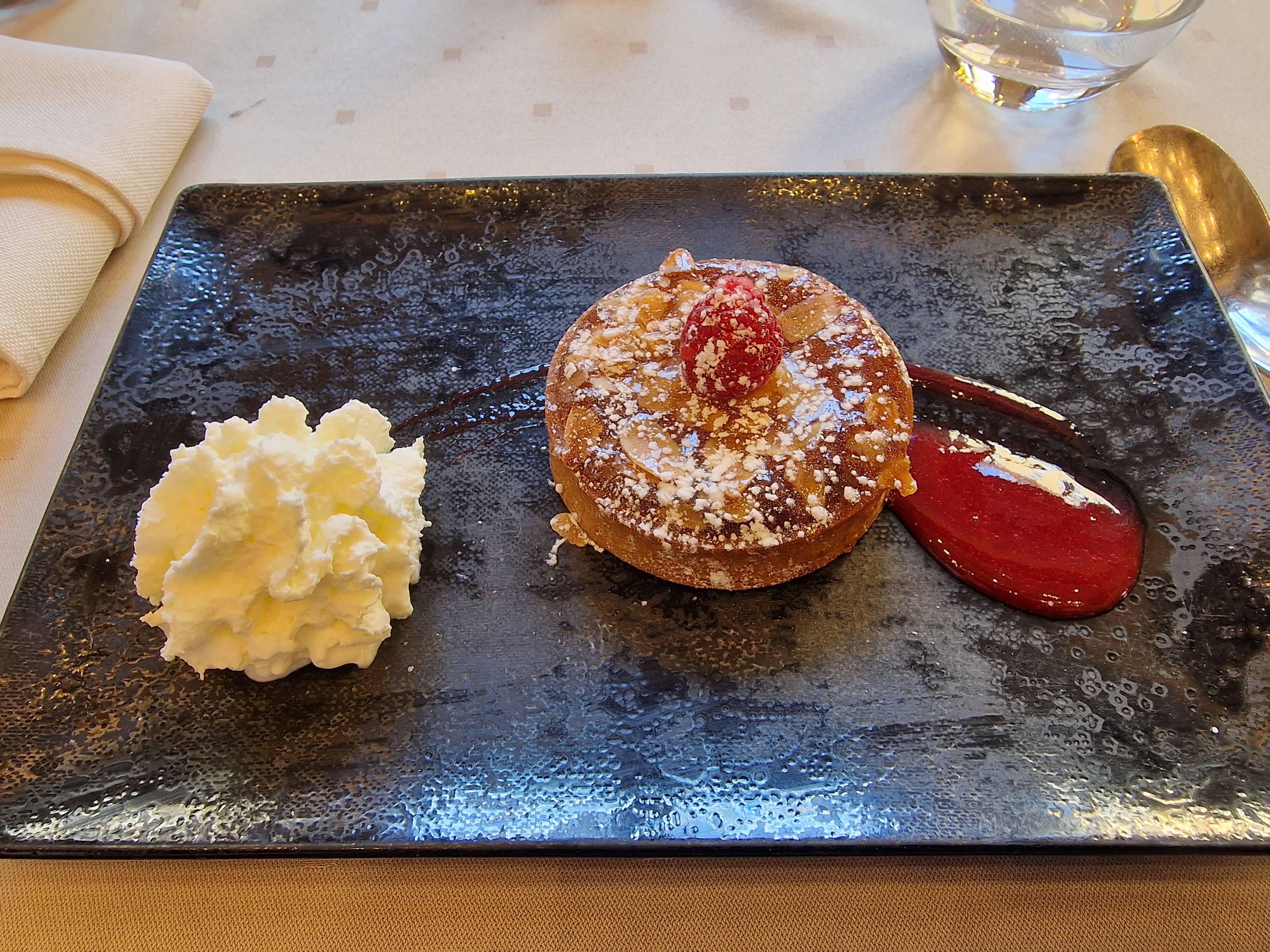 Restaurant avec des plats et prix gastronomique. Pas d'indication sur les allergènes, ni des explications claires des plats. Les changements de menu ne sont pas annoncés et les plats ne sont pas servis avec les accompagnements annoncés. Demande de dessert sans amandes, amandes mis et dessert à base d'amande.