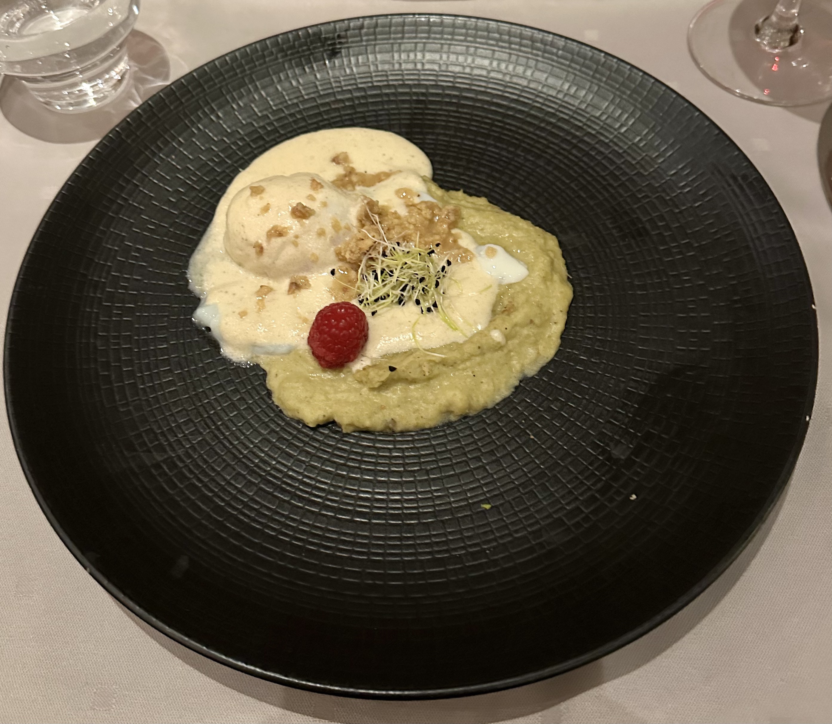 Ce restaurant a deux visages. Le premier décrit bien la nourriture et le vin, l'élégance de la nourriture servie. Le deuxième pire, c'est que le serveus essaie de vous jeter hors de la table avec des mots grossiers, même si vous n'avez pas encore bu votre vin et parce que vous bloquez une place pour quelqu'un qui peut payer plus. Depuis 7 ans que j'évalue professionnellement des restaurants, rien de tel ne m'est jamais arrivé et j'espère que cela n'arrivera jamais. Des excuses sous forme de vin et de crème glacée gratuits ne résoudront pas le choc psychologique de ce que j'ai dû vivre.