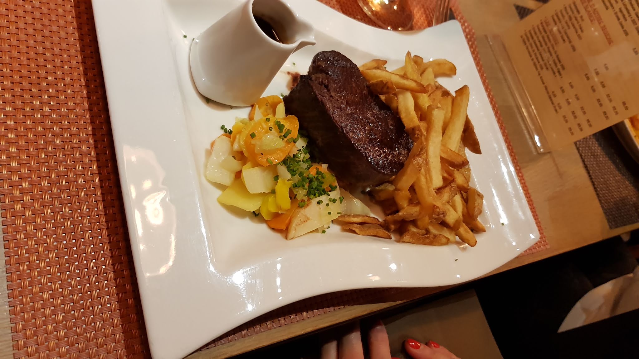 Bonjour Excellent plat ( filet de bœuf Angus) tarif très bas. Coquilles St Jaques également très bonnes. Personnel peut attentif, dommage. Je recommande pour la cuisine. Merci.