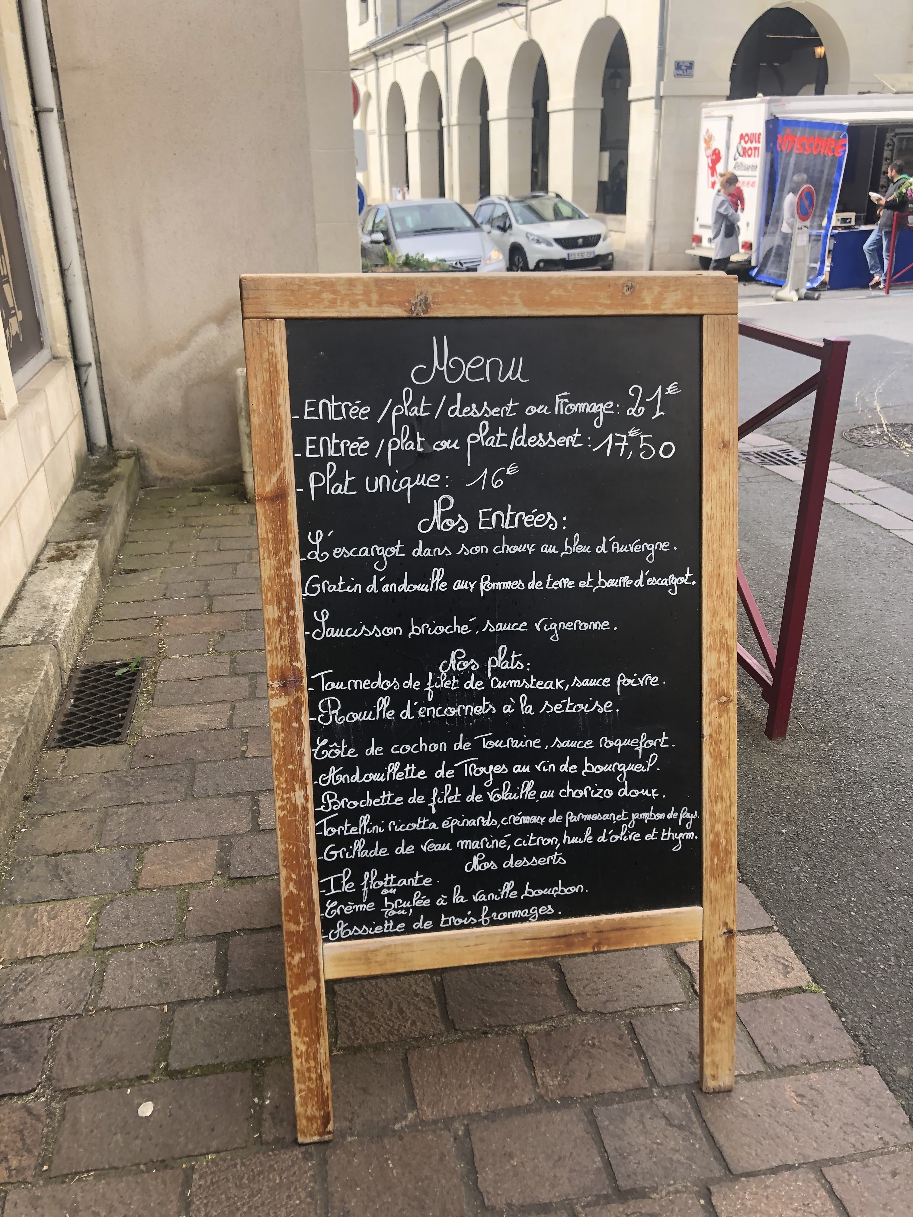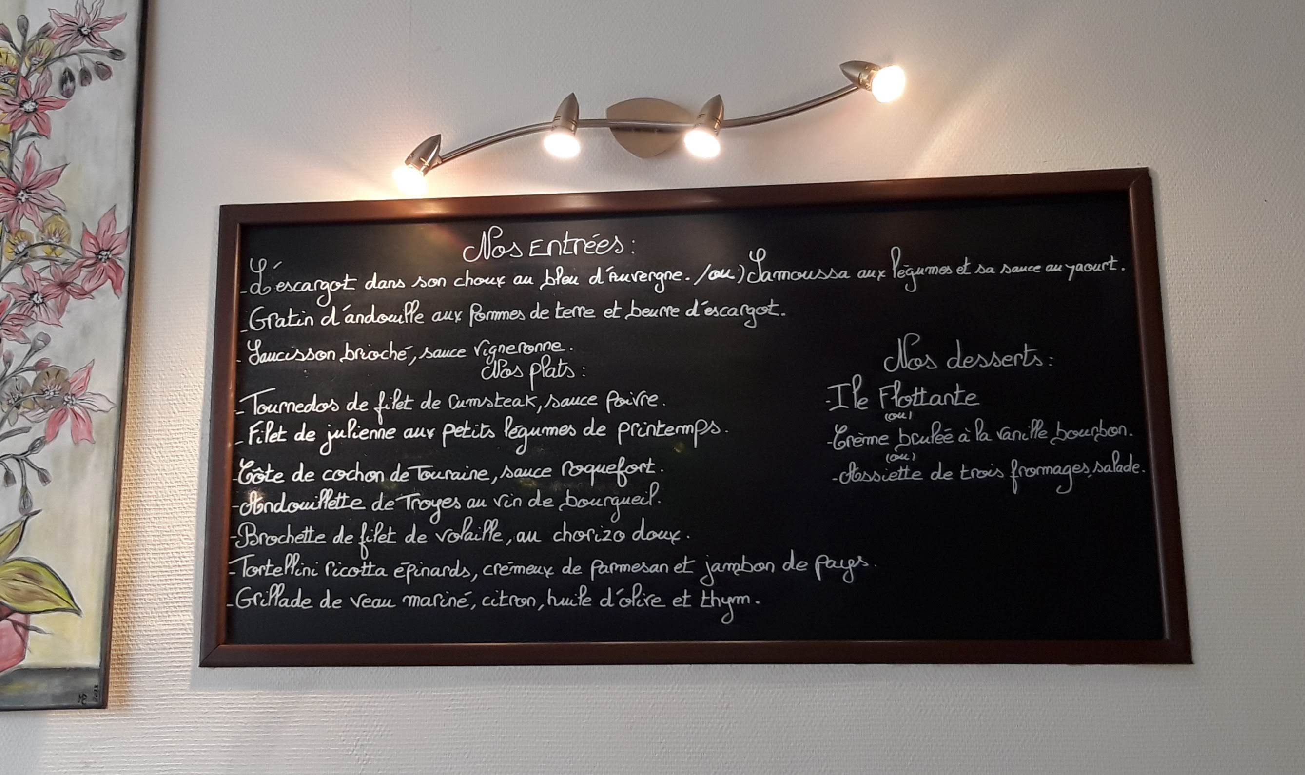 Restaurant au centre de Bourgueil. 4 choix d’entrées, 7 choix de plats et 2 desserts ou fromages, le tout pour 21€, un samedi soir! Qualité et quantité au rdv. Accueil très sympathique, conseils sur les vins de Bourgueil, cuisine avec des produits de qualité. On y retournera avec grand plaisir.
