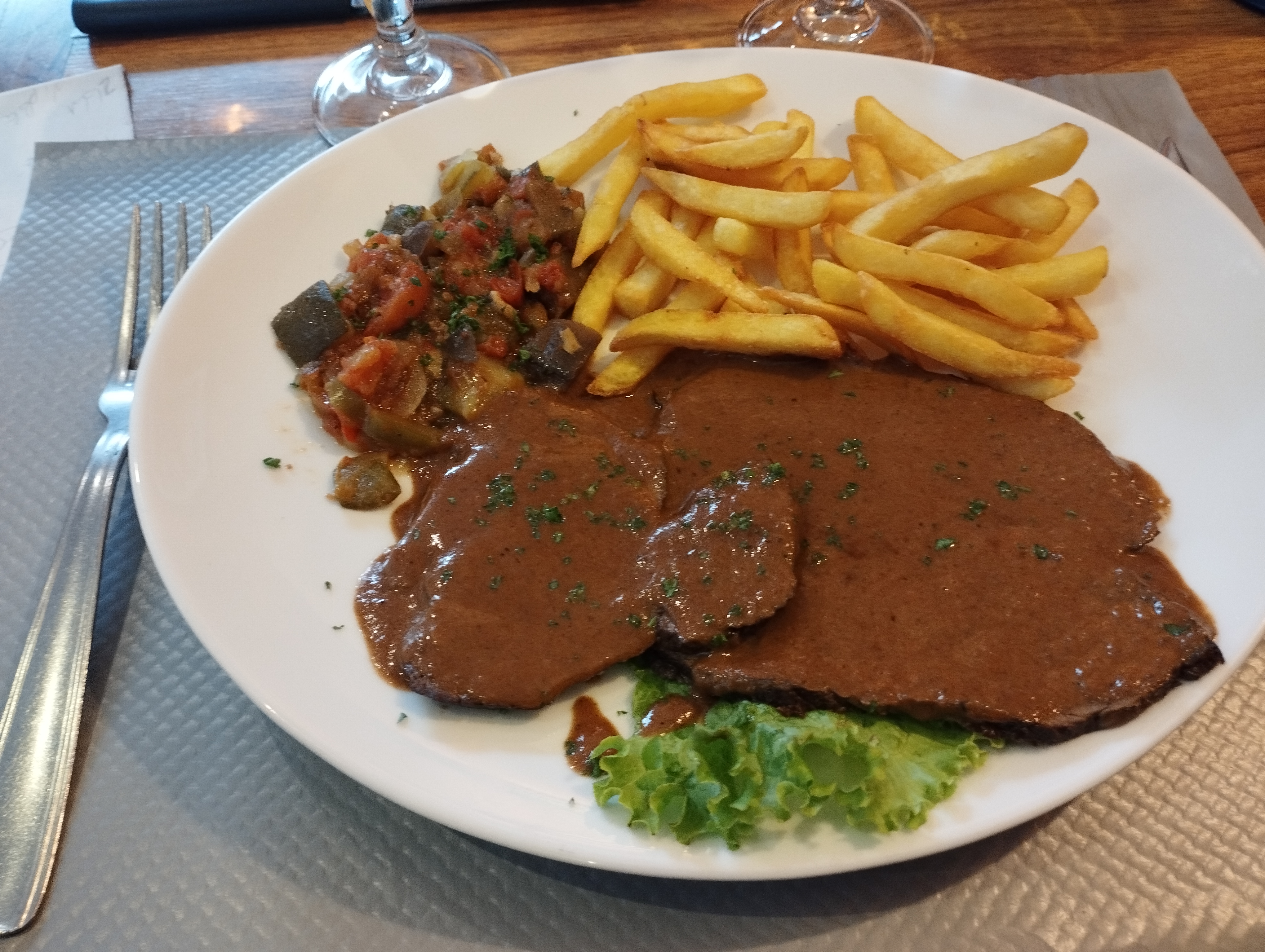 Prix fantastiques pour la France, option de bonne quantité dans tous les plats, choix parmi un buffet ouvert devant des salades et des pâtes et un deuxième plat, traitement fantastique du personnel, un endroit à répéter et fortement recommandé