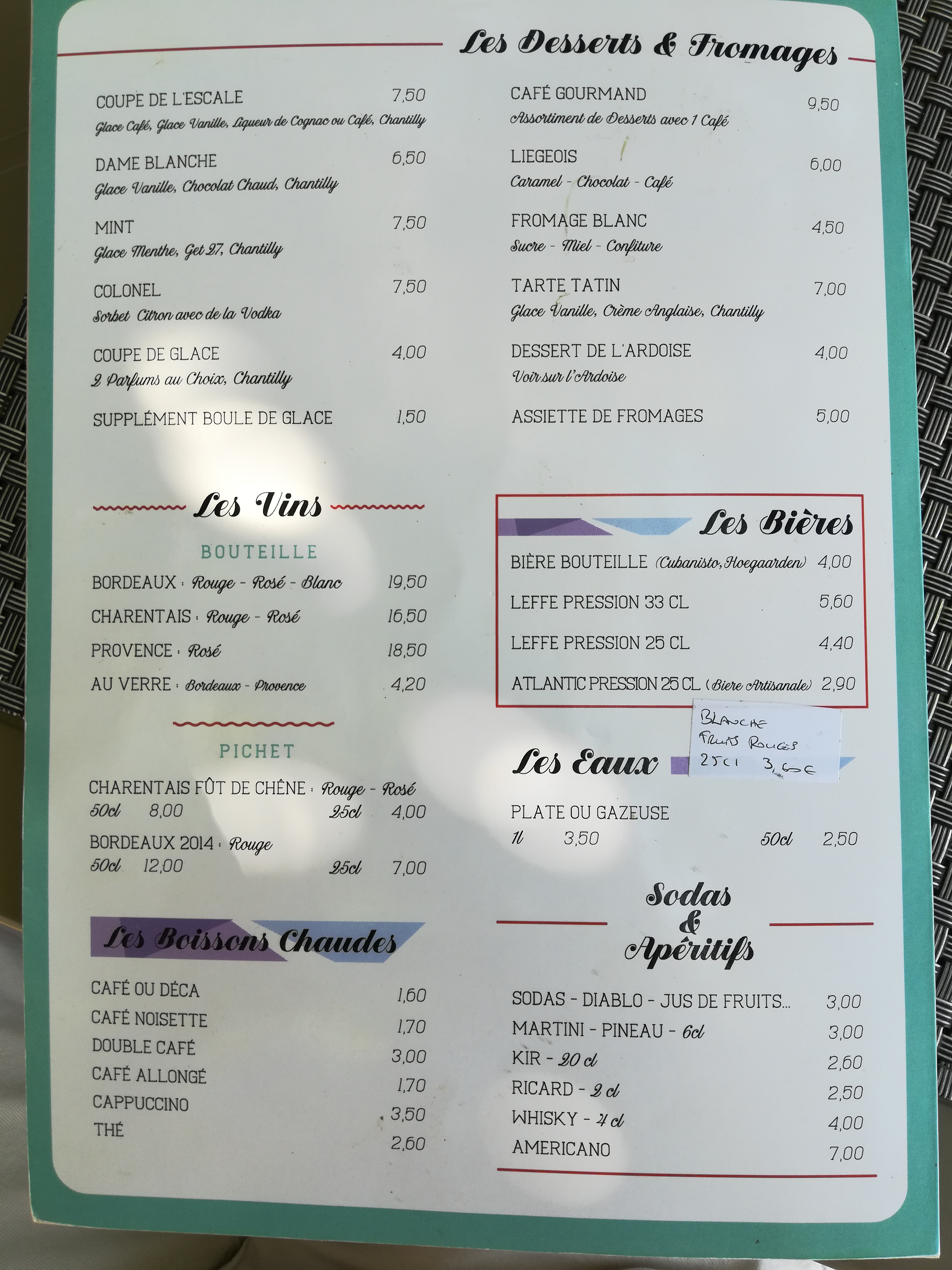 Réservation pour le mercredi 14 juillet, très bon accueil, assiette généreuse, j'y retournerais à mon prochain séjour sur royan sans problème.