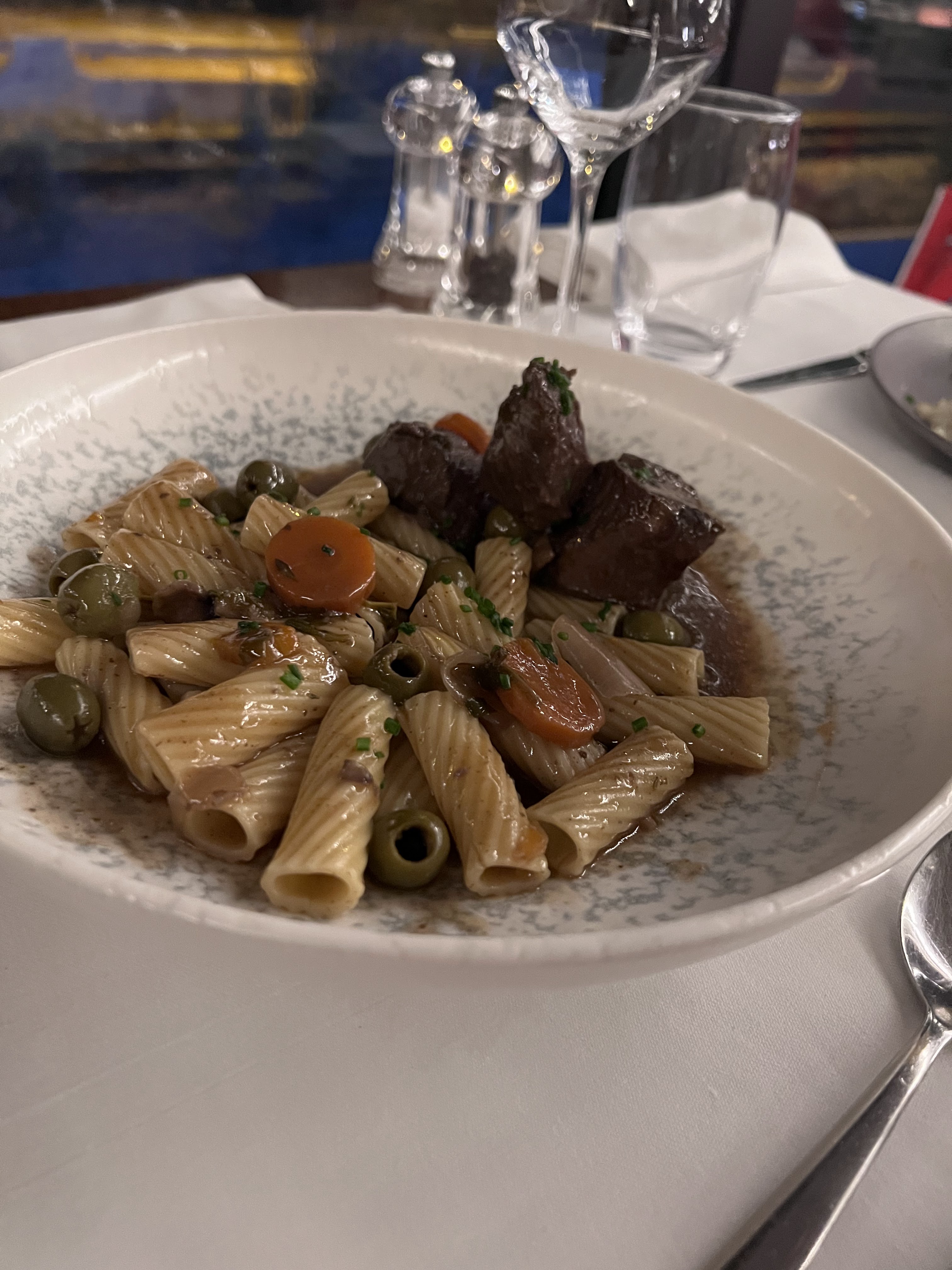 Personnel accueillant, qui a réussi à nous installer en terrasse. Nous avons pris un apéro et deux plats, un espadon avec une purée de patate douce + des raviolis au brocciu, un vrai délice de saveur En plus, on nous a offert une liqueur de myrte à la fin de ce délicieux repas.