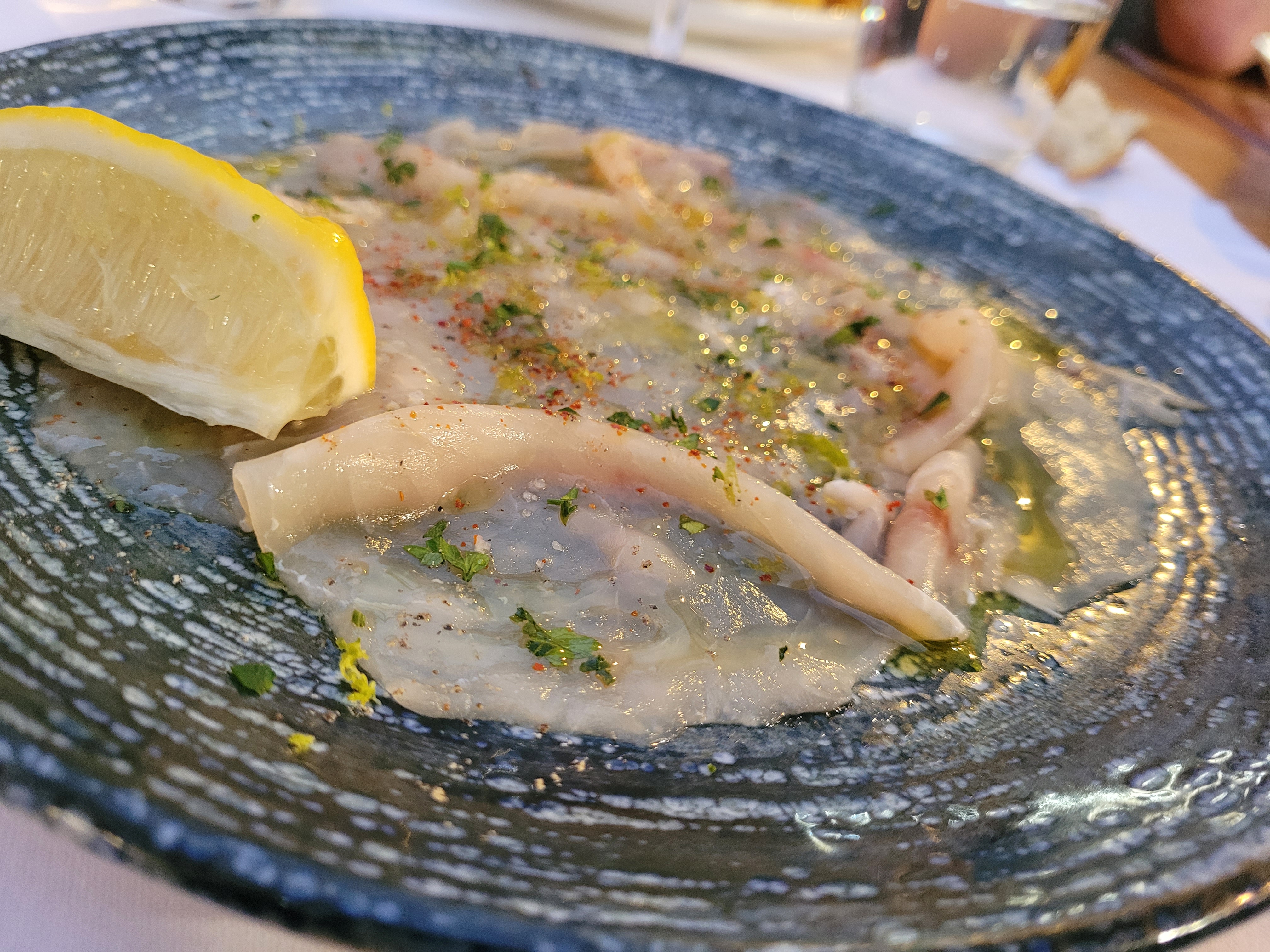 Français // English Nous nous sommes arrêtés pour manger du poisson frais de la pêche local, ( chose très compliqué à avoir je trouve ) et bien nous n'étions pas déçu ! Un excellent carpaccio d'espadon suivi d'un thon local aux linguinne, ail et piment un régal ! Bon moment passé chez vous ! We stopped to eat fresh fish from the local fishery, (very complicated thing to have I think) and well we were not disappointed! An excellent swordfish carpaccio followed by a local tuna with linguine, garlic and pepper a treat! Have a good time at home!