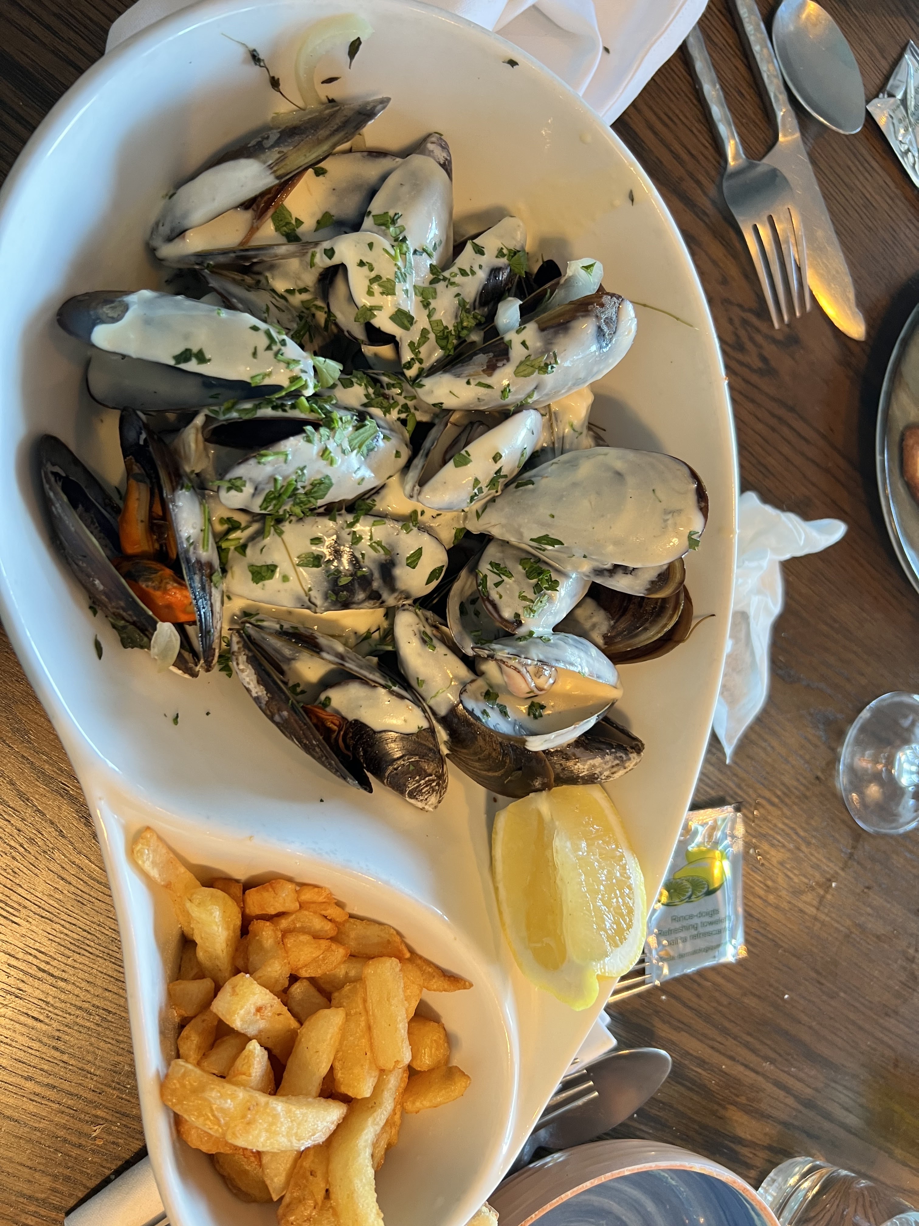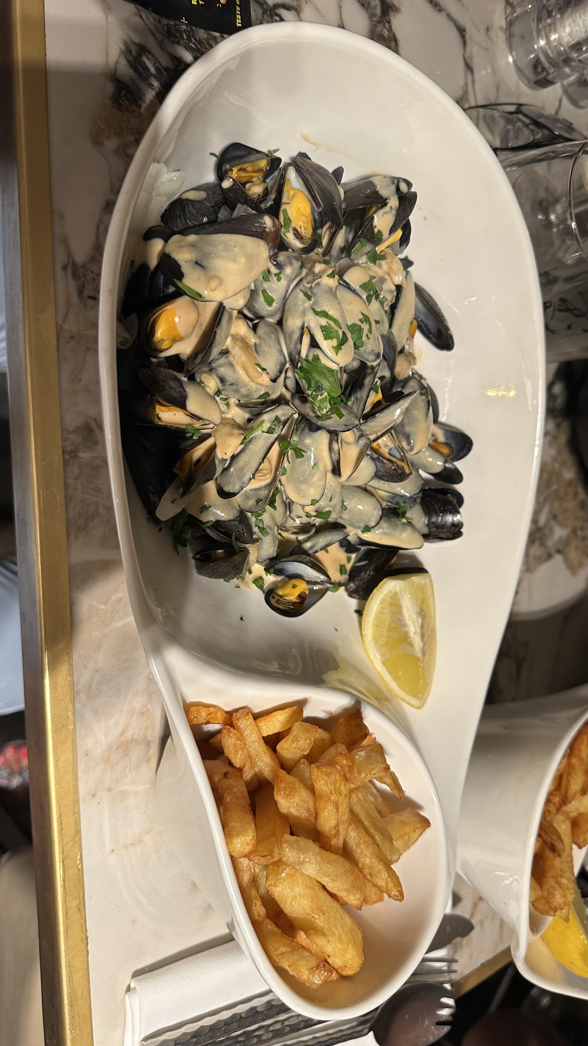 Très bon, tout simplement. J'aurais apprécié un peu plus de choix dans les sauces des moules (au roquefort par exemple), mais c'était très bien tout de meme. Bonus pour le jus de pamplemousse PRESSÉ!