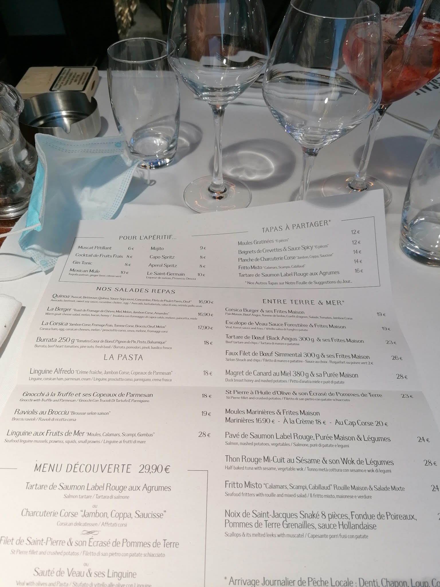 Bon moment. Dommage nous étions sur une table côté rue, table quelque peu bancale. Côté prix, les mêmes que ses confrères sur l’ile rousse. 20€ pour une escalope de veau frite et 16€ pour des moules marinières. Côté quantité, l’escalope de veau était bien garnie de champignons et de taille correcte. Côté moules par contre, grosses coquilles parfois vides et la portion est assez légère. Côté qualité, une moyenne haute mais pas bon plus exceptionnelle. Concernant la réception, on sent qu’il faut brasser du monde et que le client est surtout un porte-monnaie, alors quelques blagounettes mais faut pas que ça traine. Je mets un 4 mais ça mérite plus un 3,5.